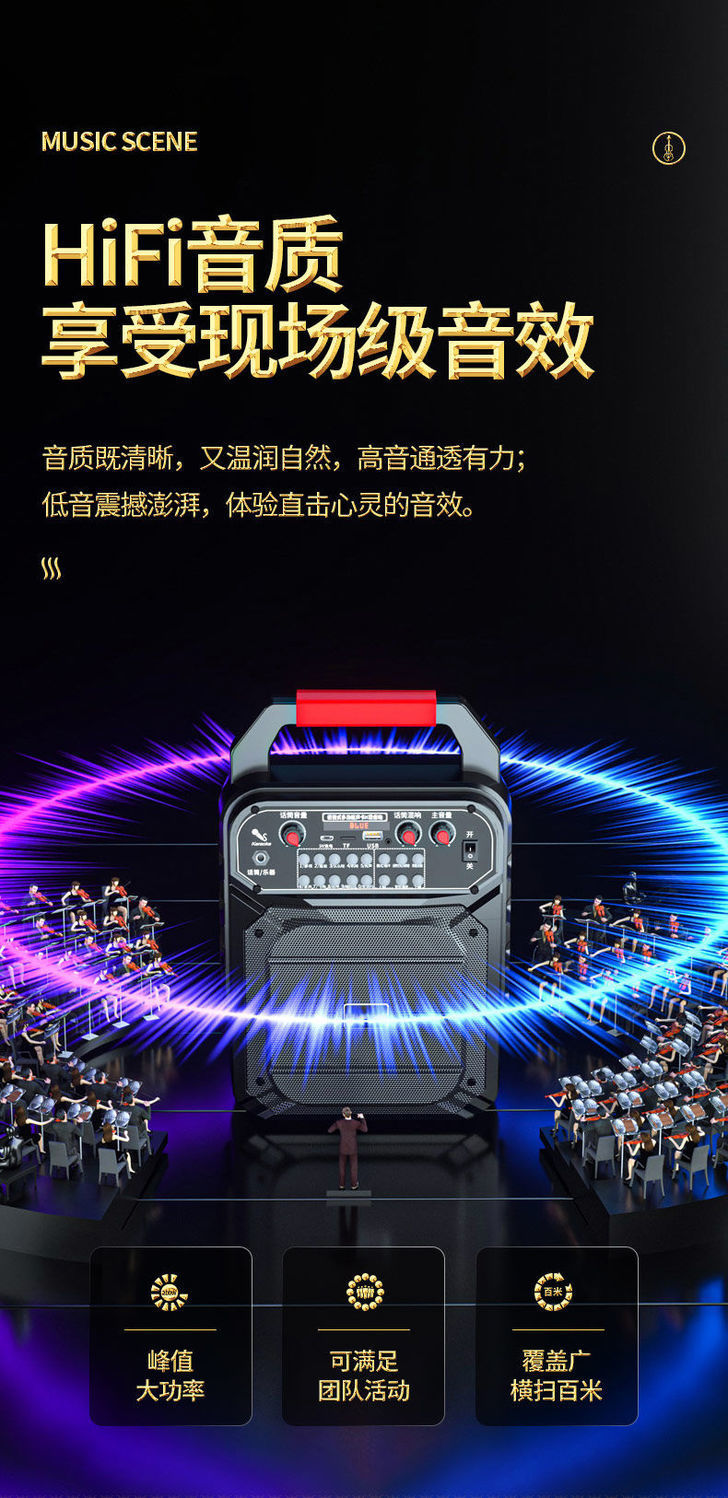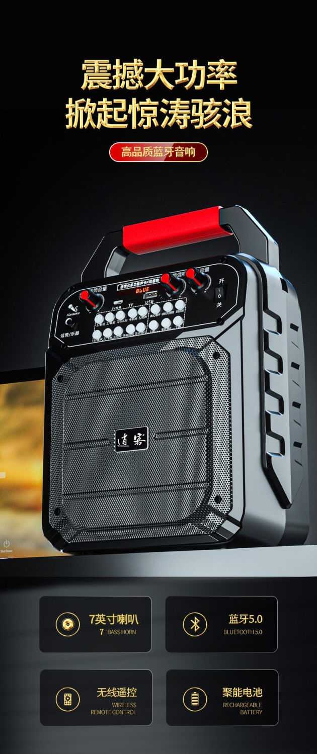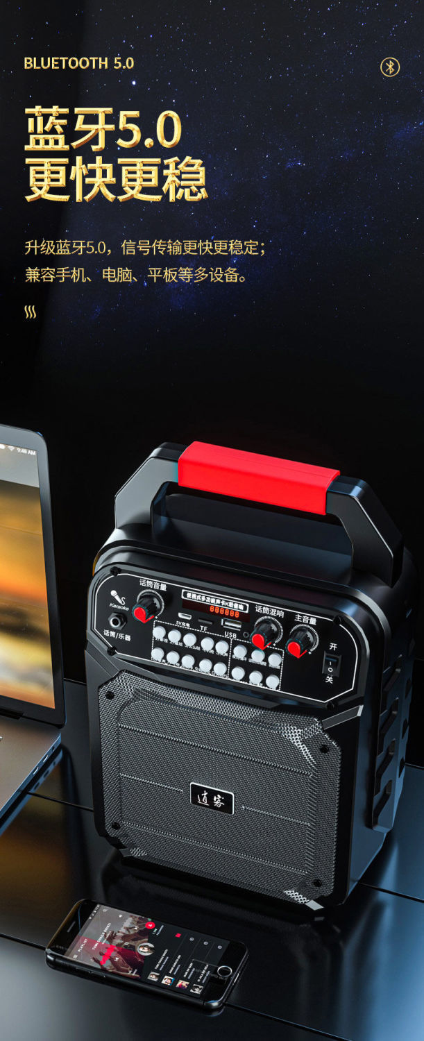 스퀘어 댄스 오디오 야외 휴대용 블루투스 스피커 고품질 초대형 볼륨 서브 우퍼 홈 가라오케 무역 공장스토어 가기
