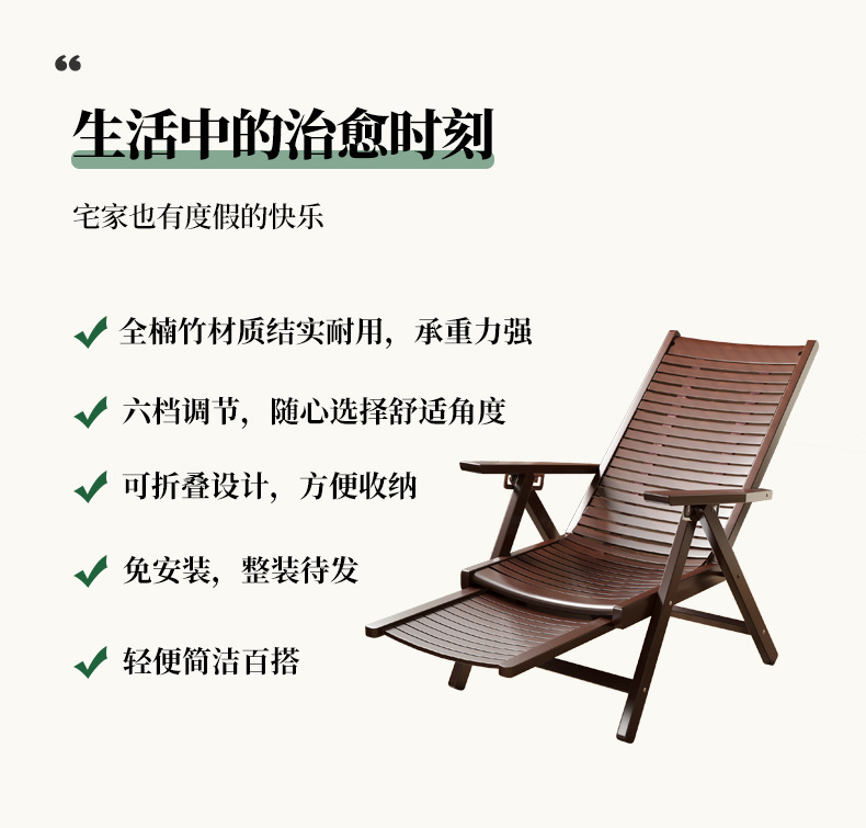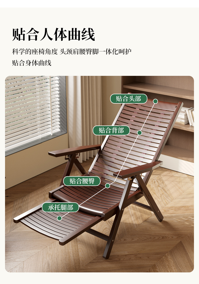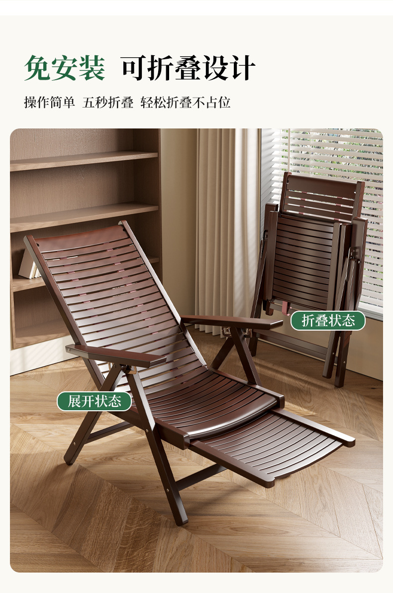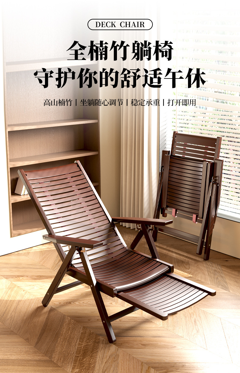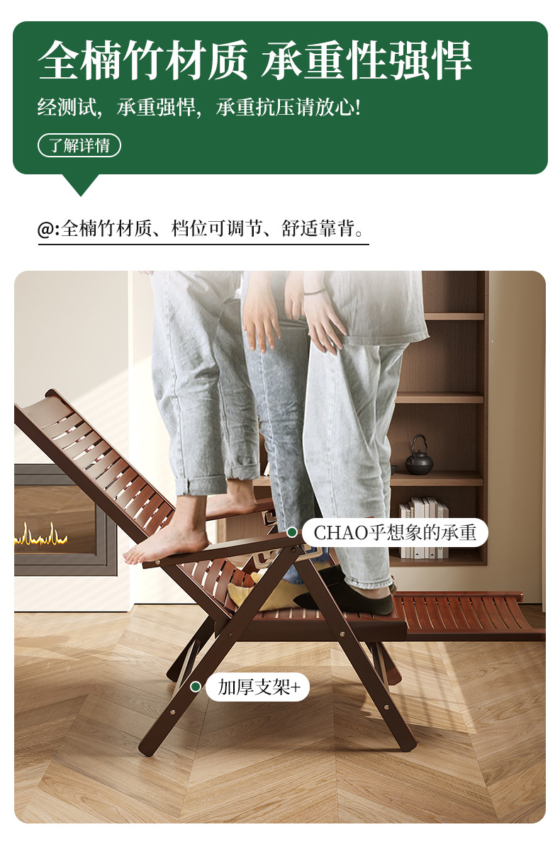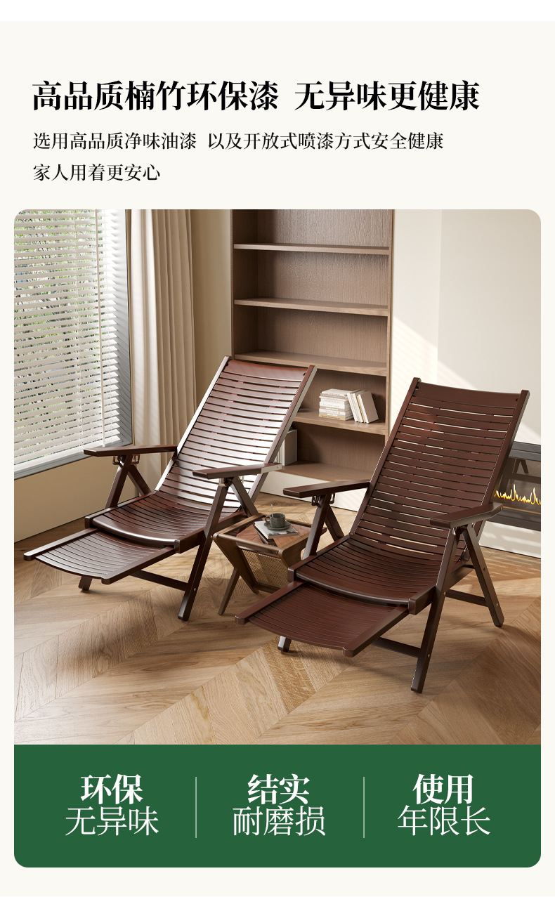 의자 대나무 안락 의자 점심 시간 집에 강한 접이식 의자 발코니 낮잠 레저 내구성 노인을위한 내구성 의자