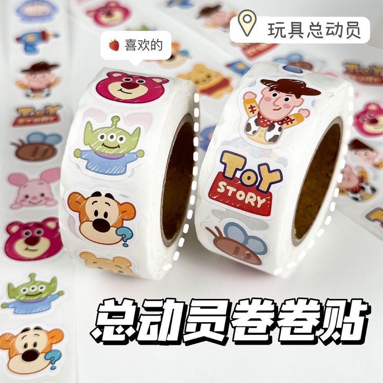 인기 장난감 500개, 토이 스토리 롤 스티커, 씰링 스티커, 만화 귀여운 핸드북, 휴대폰 장식 스티커스토어 가기
