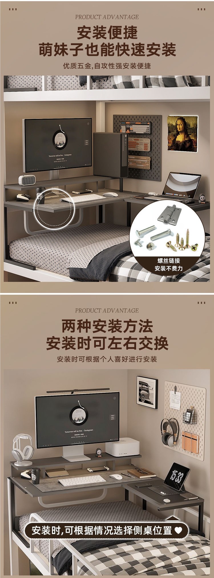 침대에 걸린 컴퓨터 책상 코너 테이블 대학생 기숙사 침실 e-스포츠 테이블 데스크탑 컴퓨터 책상 게으른 사람