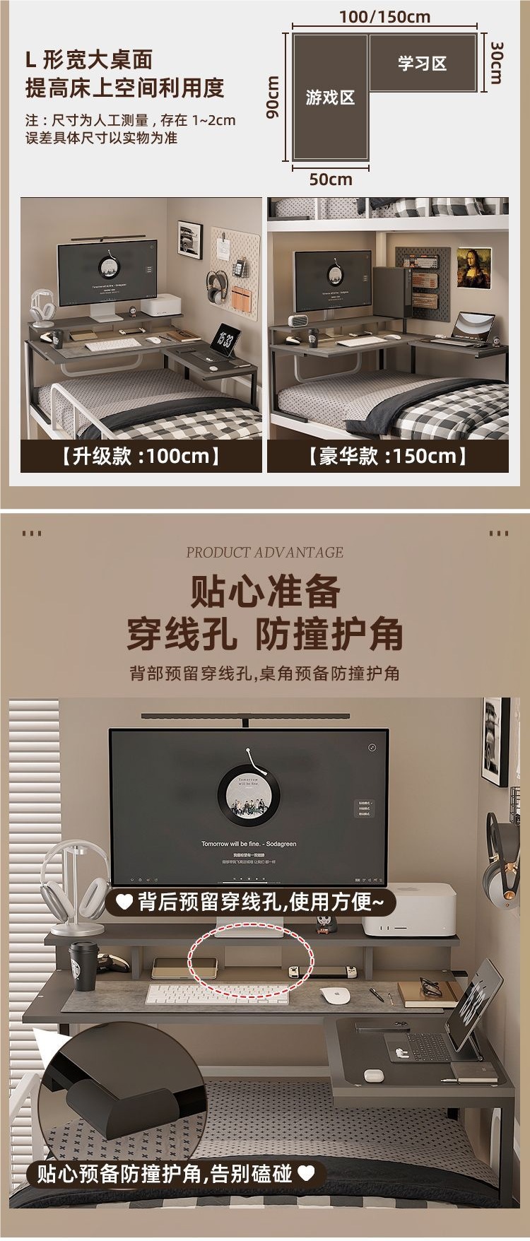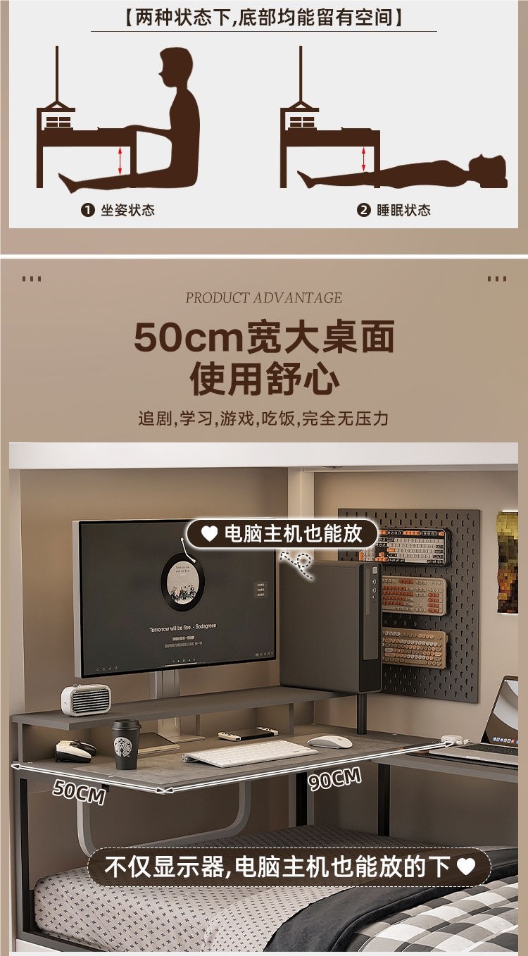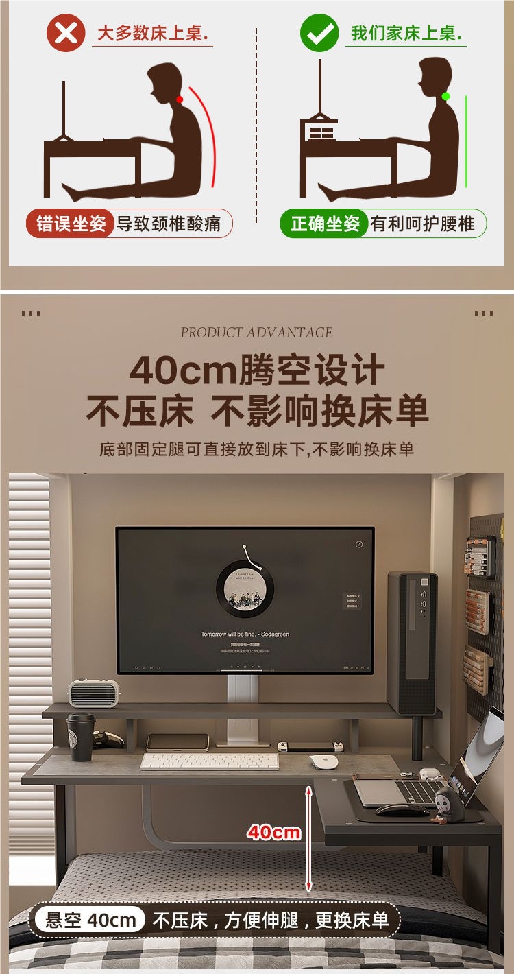 침대에 걸린 컴퓨터 책상 코너 테이블 대학생 기숙사 침실 e-스포츠 테이블 데스크탑 컴퓨터 책상 게으른 사람스토어 가기