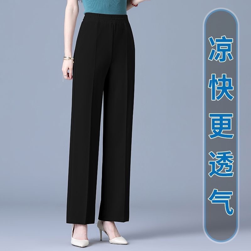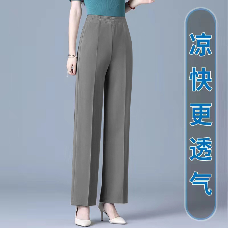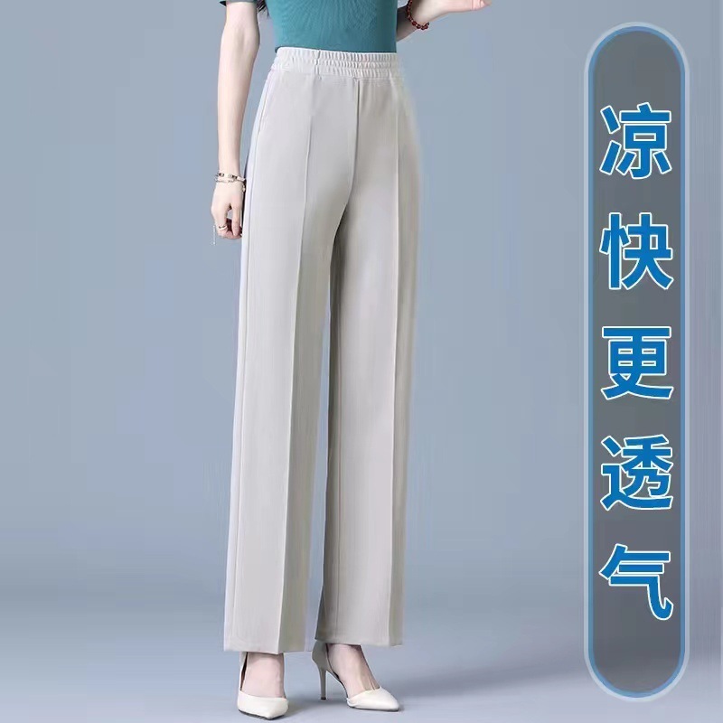 여름 여성용 엄마 와이드 팬츠, 얇은 아이스 실크, 중년 및 노년 여성용 바지, 신축성 있는 하이웨이스트 캐주얼 루즈 엄마 바지