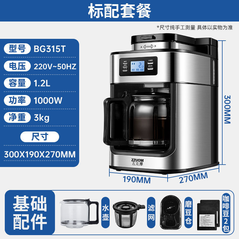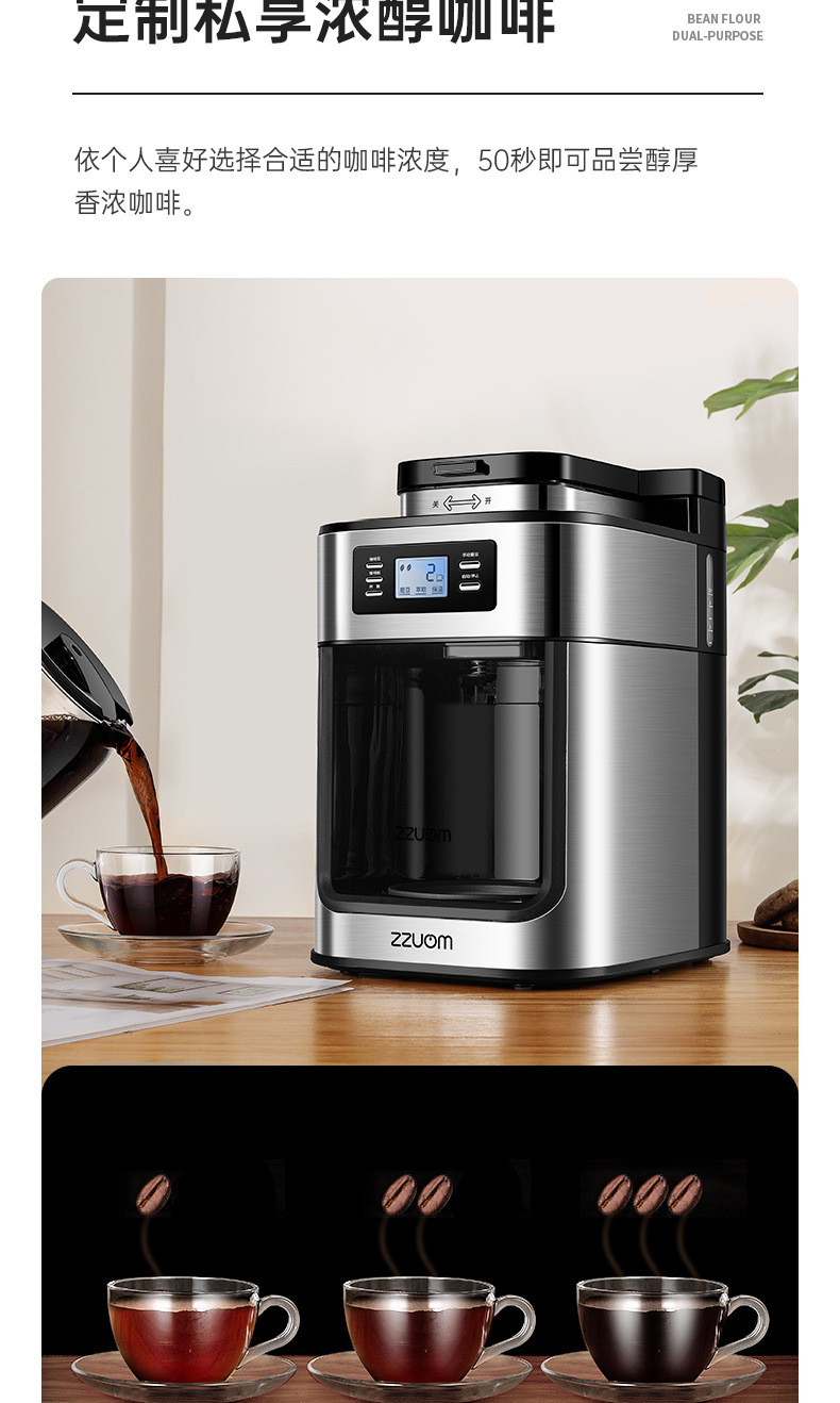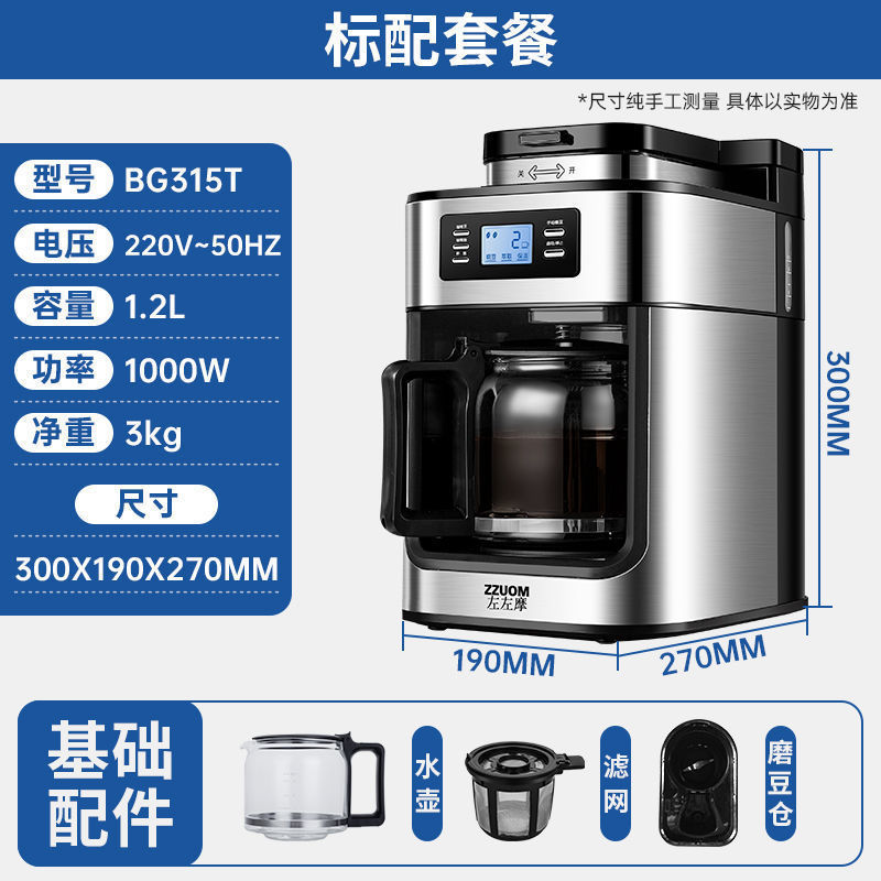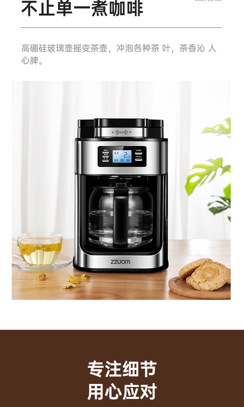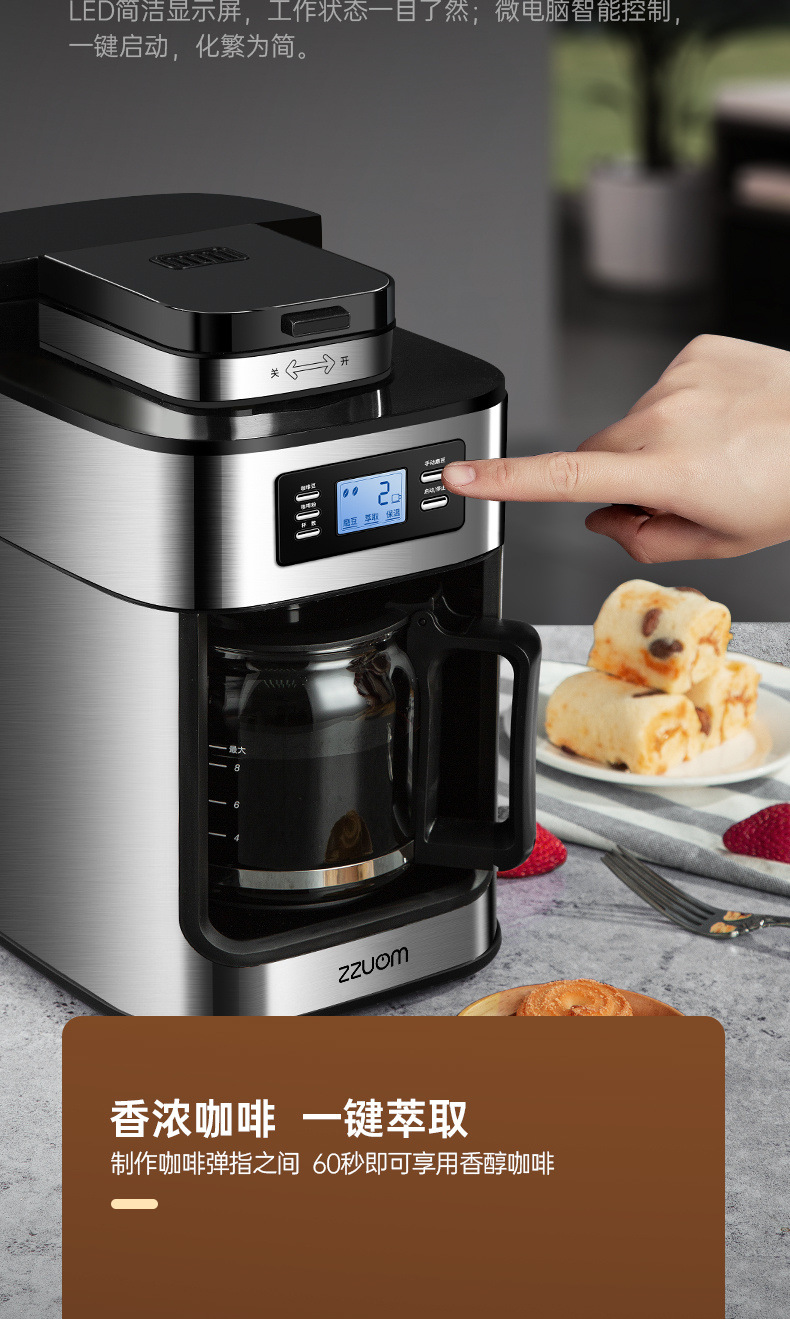 Zuozuomo 커피 머신 홈 미국 스마트 그라인딩 갓 갈아서 갓 만든 사무실 상업용 커피 포트 무역 공장