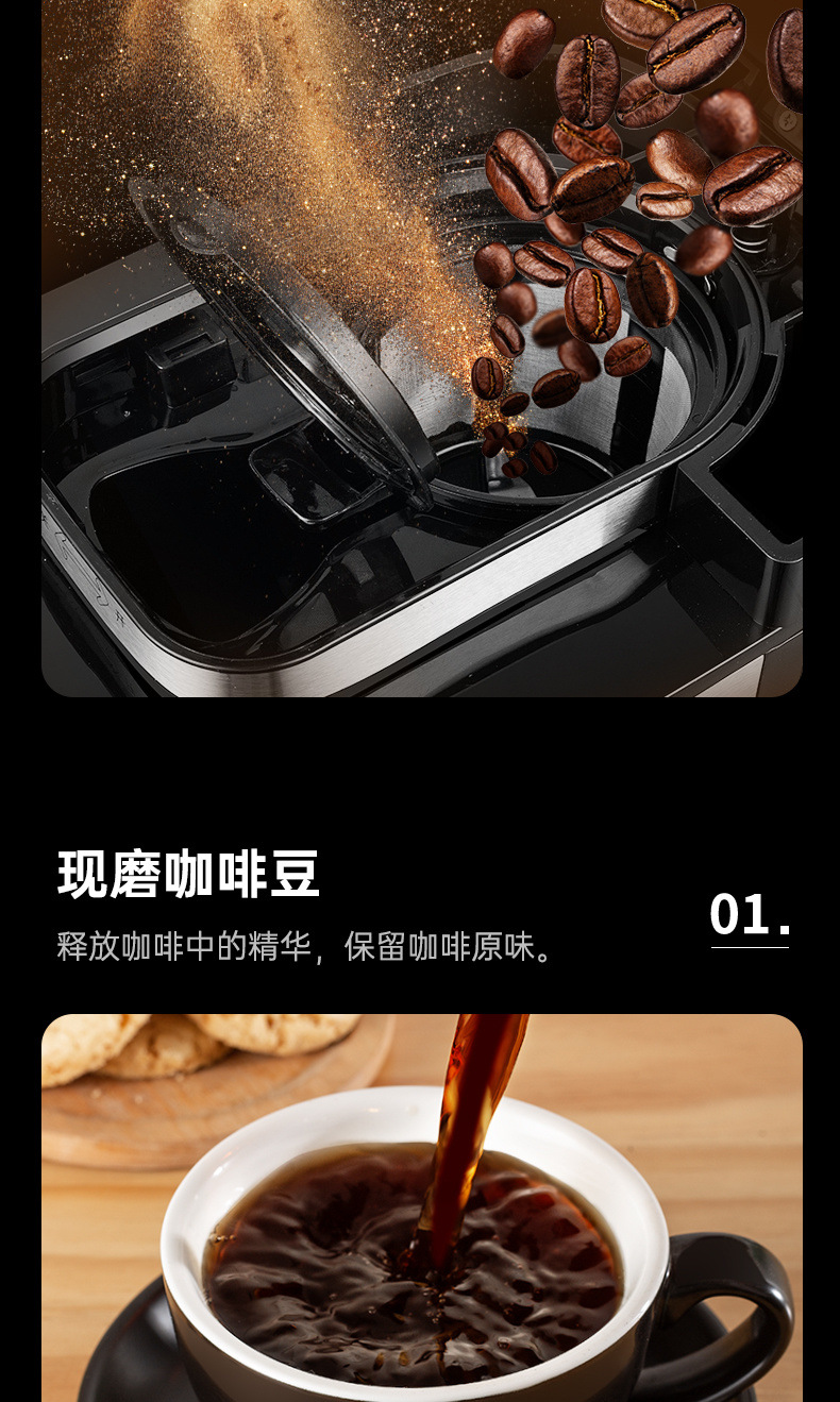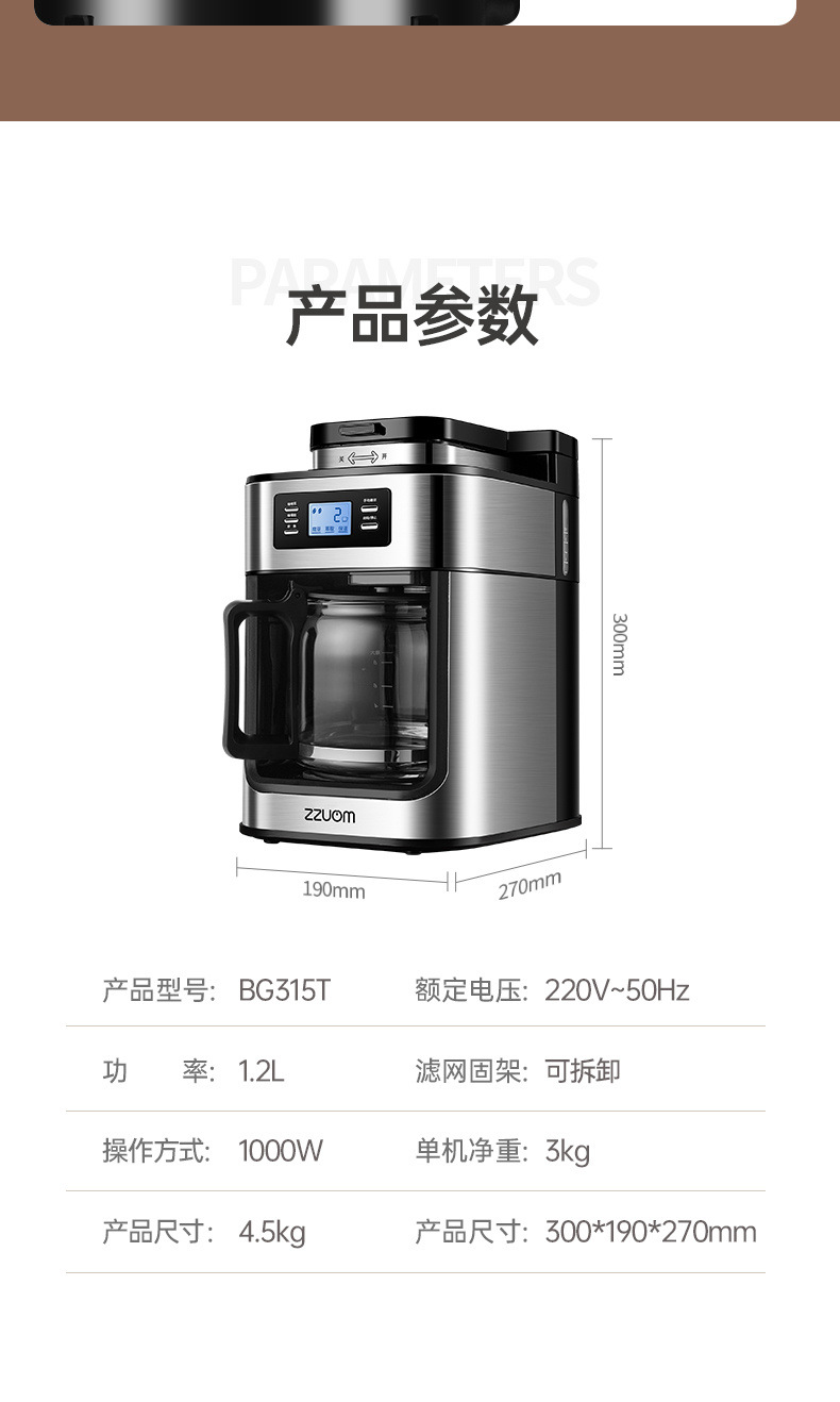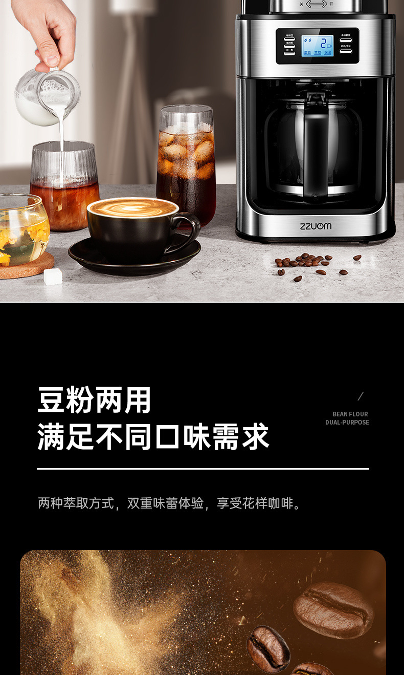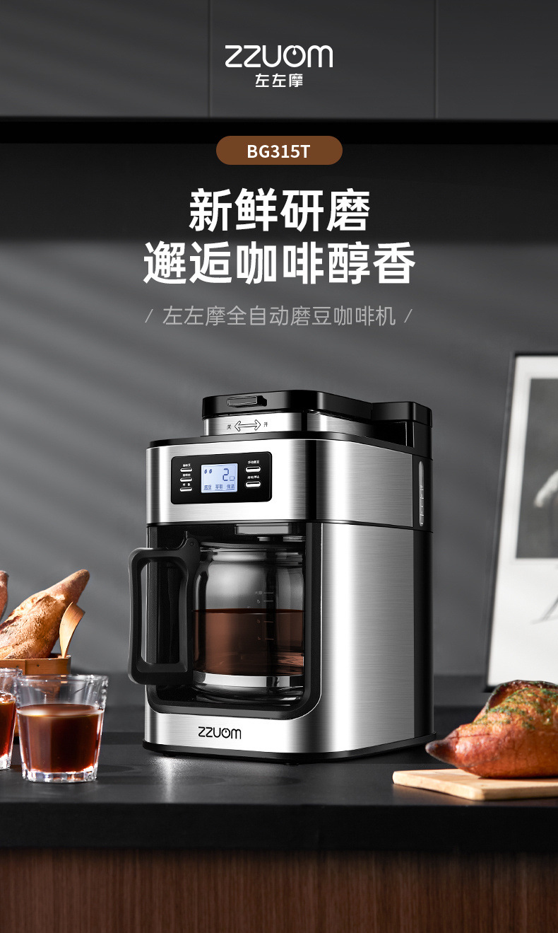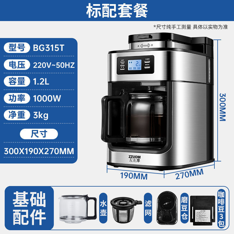Zuozuomo 커피 머신 홈 미국 스마트 그라인딩 갓 갈아서 갓 만든 사무실 상업용 커피 포트 무역 공장