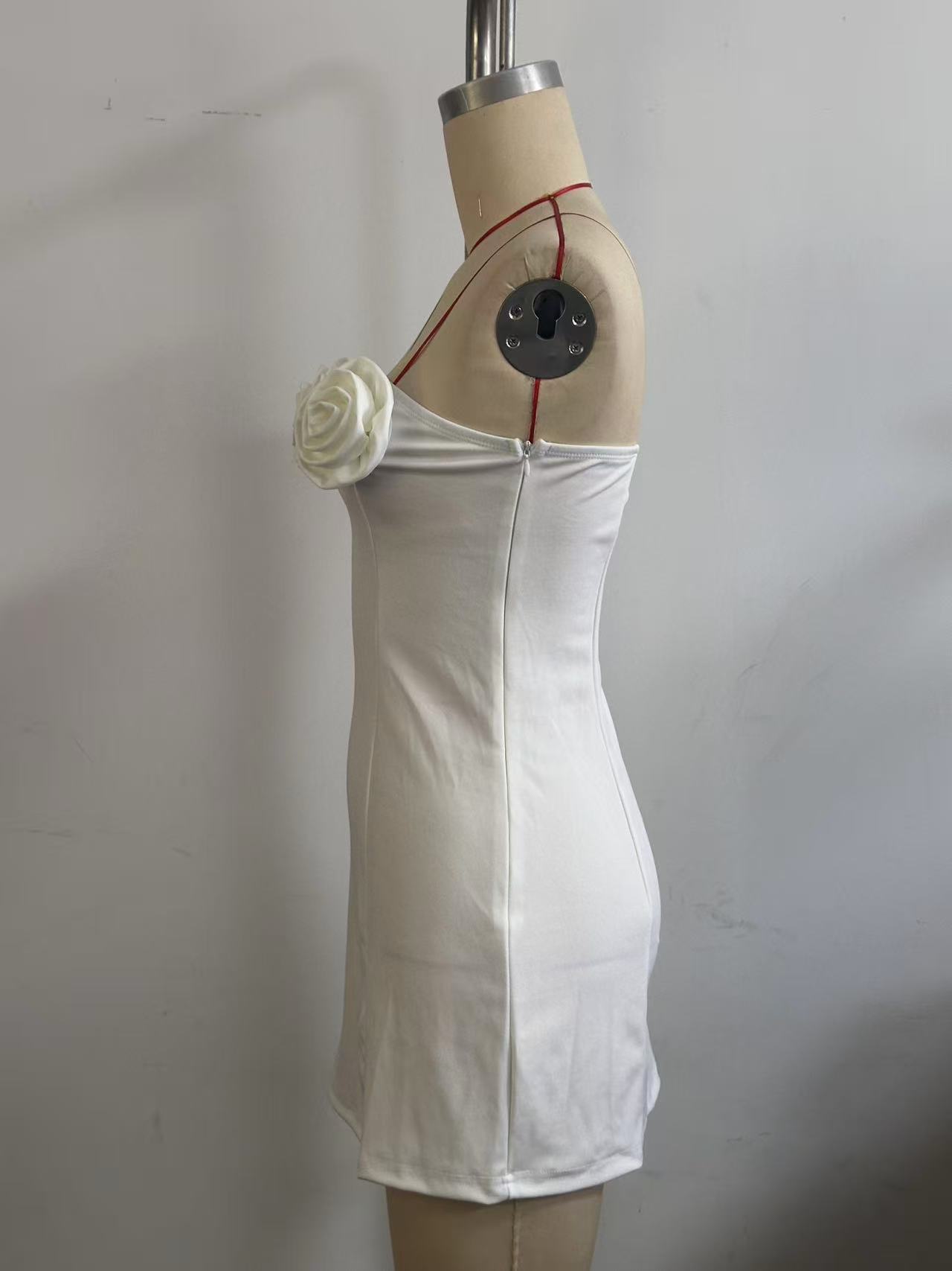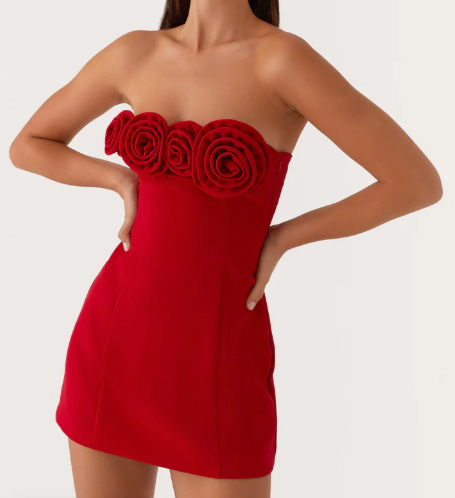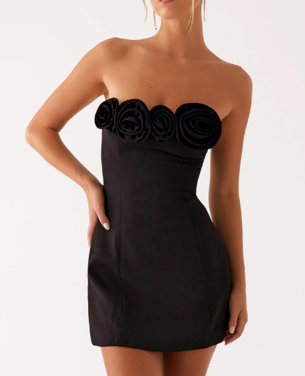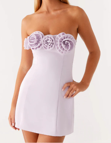 여성을위한 입체 꽃 섹시한 튜브 탑 드레스 여름 프렌치 슬림 짧은 치마 틈새 허리 푹신한 스커트스토어 가기