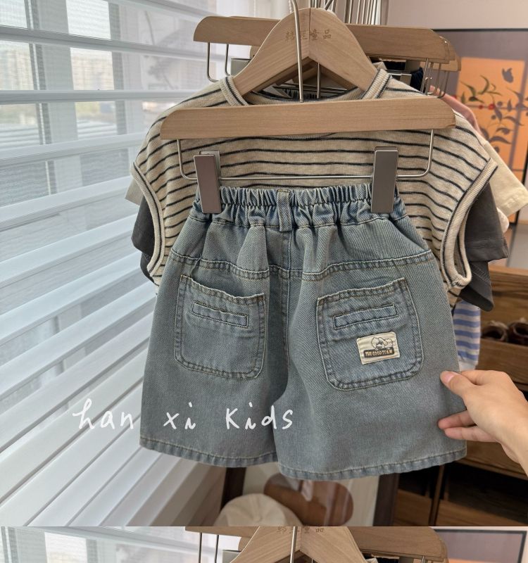 아동용 데님 반바지 2025 여름 신작 소년 루즈 반바지 아기 소년 5부 바지 아동용 초박형 중간 바지스토어 가기