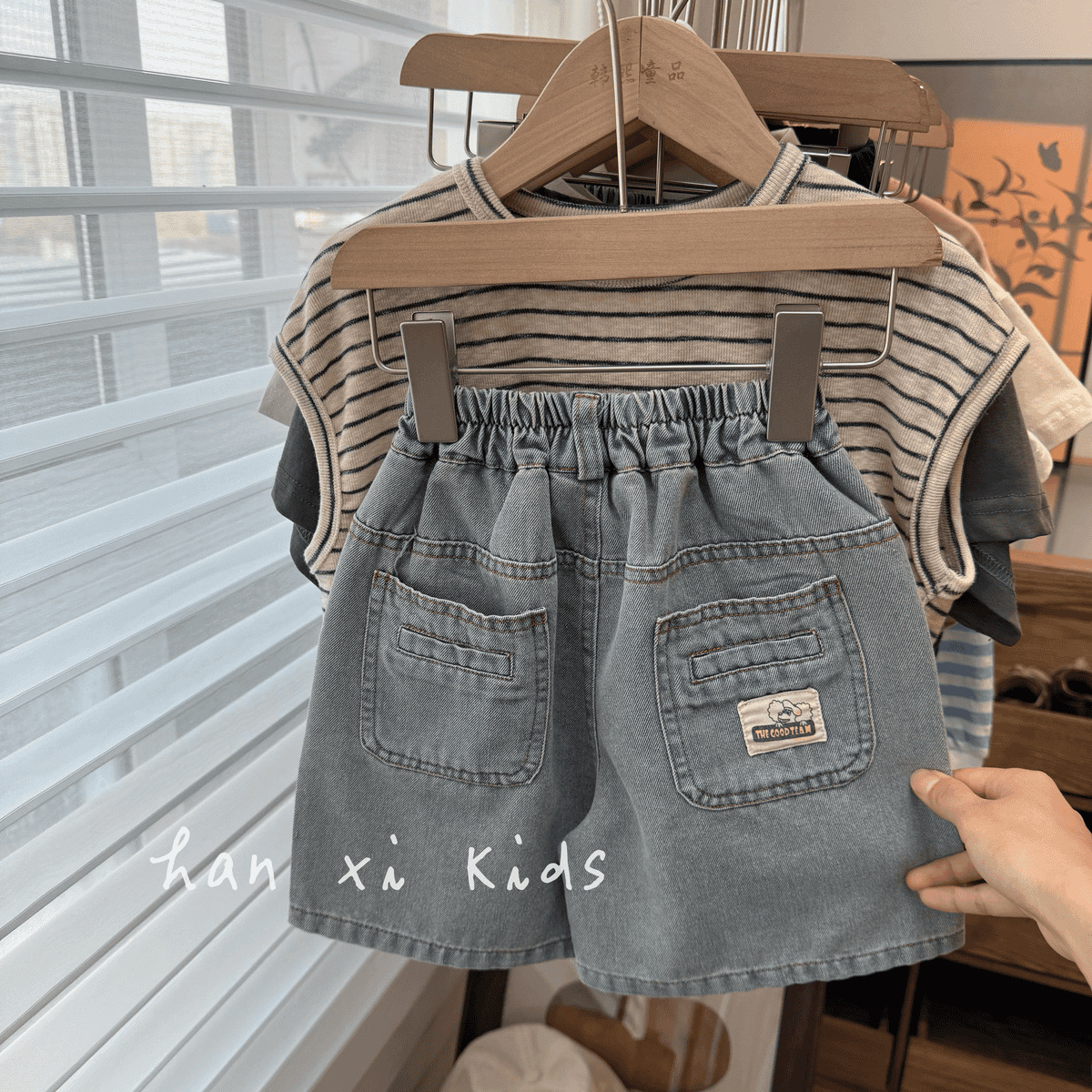 • 데님 블루 패치 쇼츠 YX2579