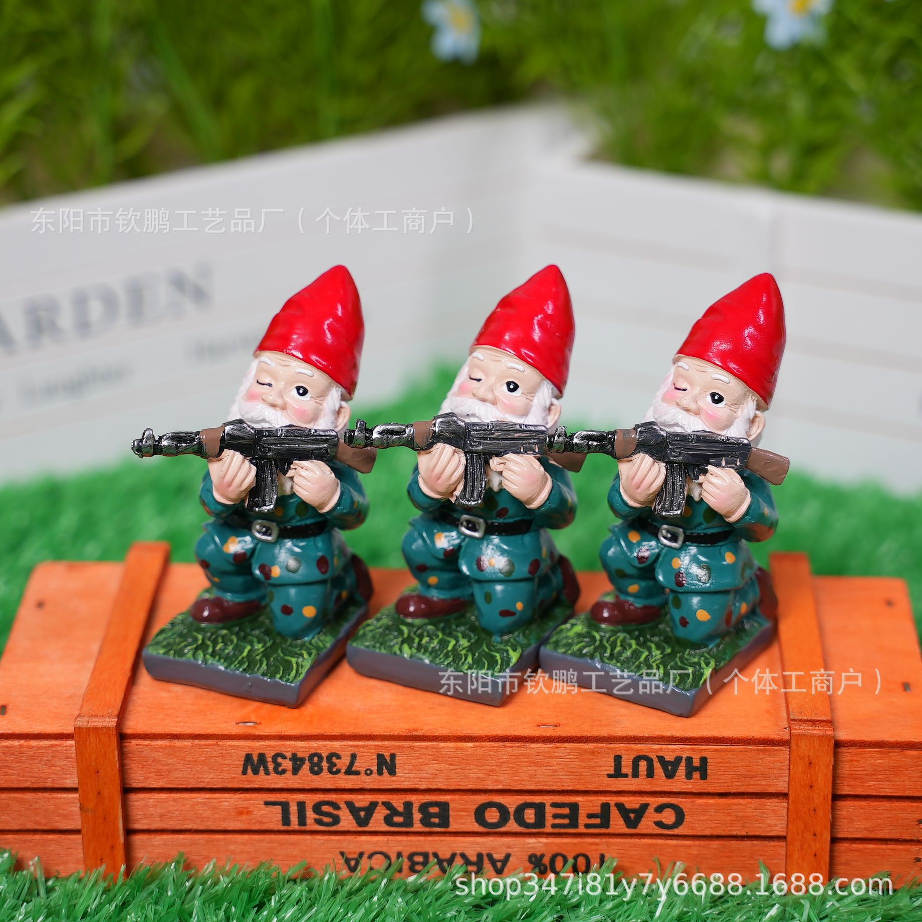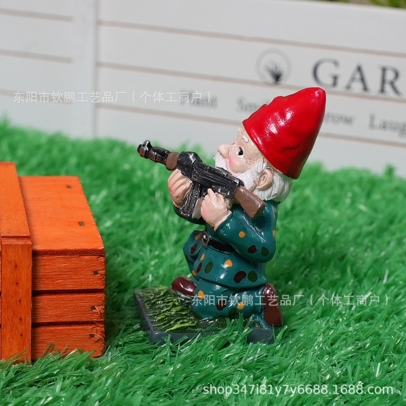 총을 가진 재미 있은 육군 정원 난쟁이 난쟁이 동상 실내 야외 안뜰 잔디 장식을위한 수지 조각스토어 가기