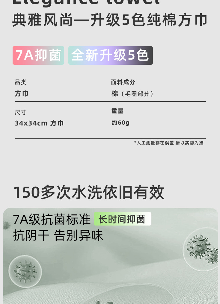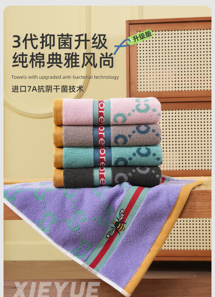 Xieyue 삼성 7A 항균 업그레이드 순수 코튼 스퀘어 타월 피부 친화적 인 부드럽고 통기성 욕실 가정용 흡수성 성인 수건