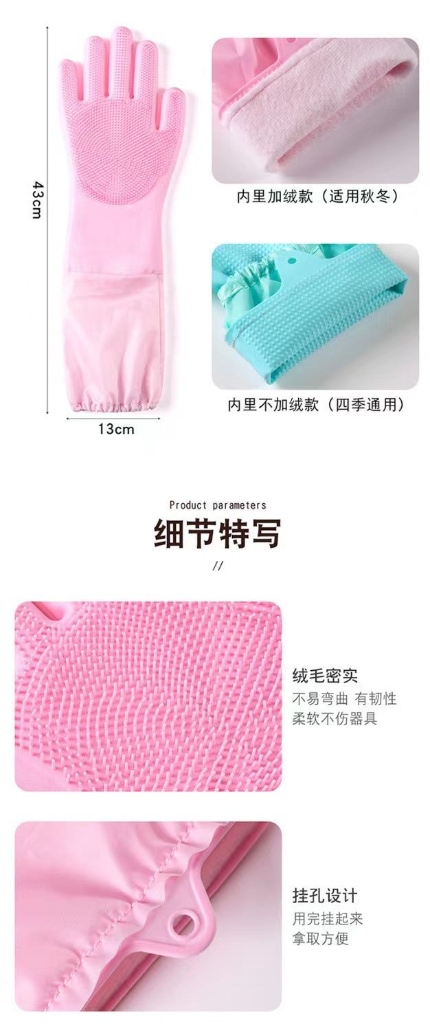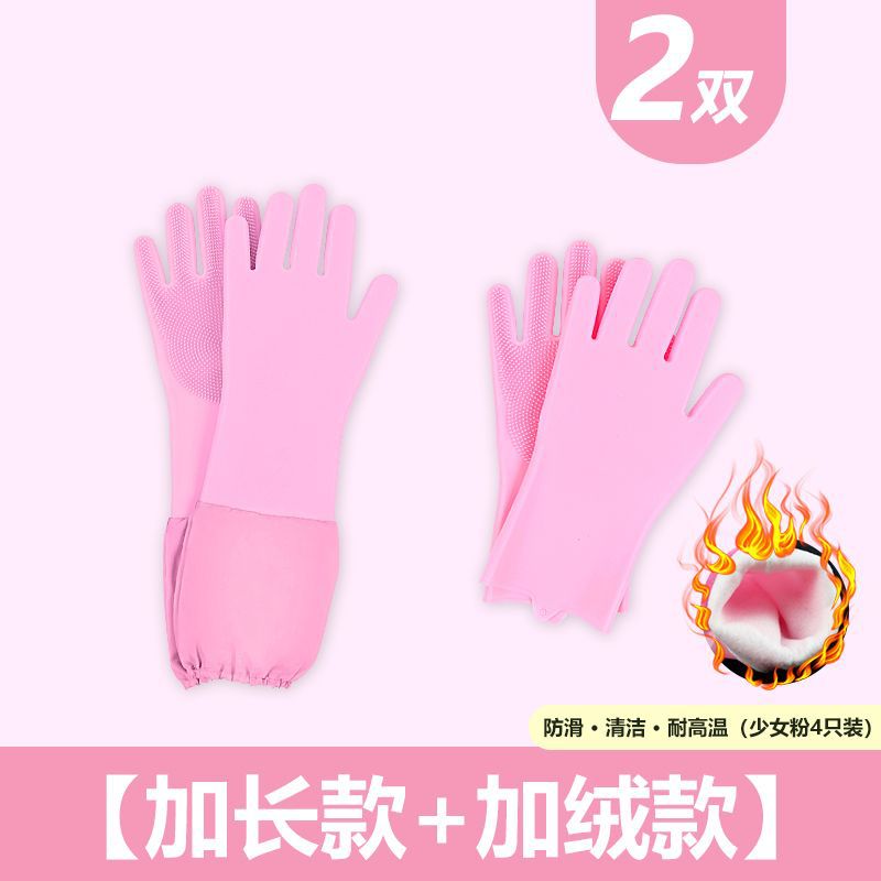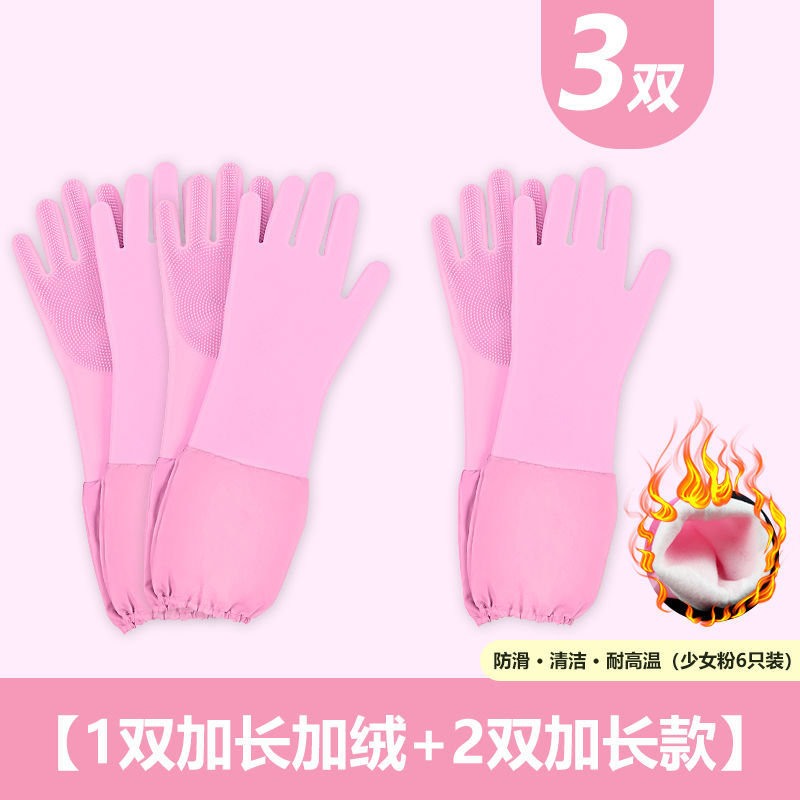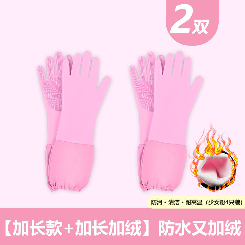 여성용 주방 설거지용 장갑, 겨울철 청소용 실리콘 클리닝, 내구성, 벨벳 모델, 화상 방지