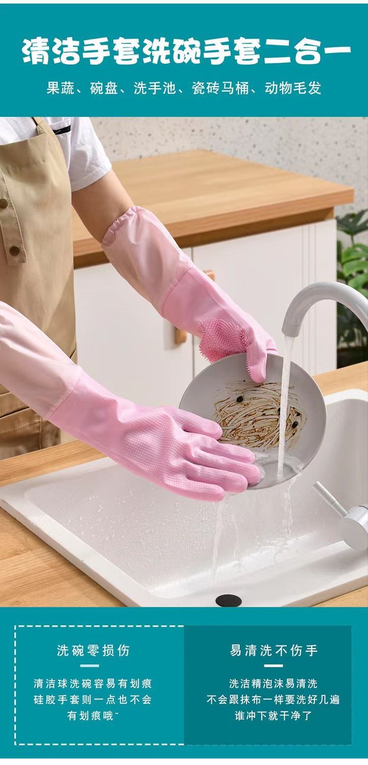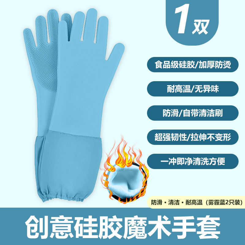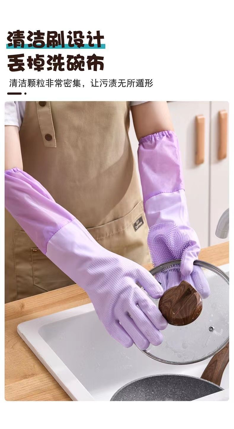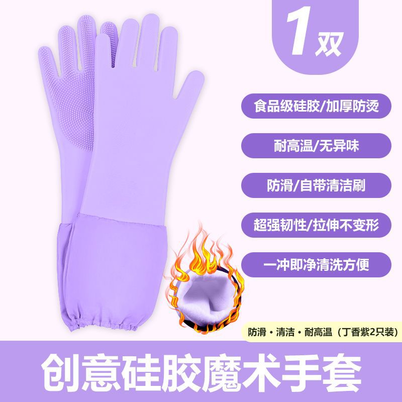 여성용 주방 설거지용 장갑, 겨울철 청소용 실리콘 클리닝, 내구성, 벨벳 모델, 화상 방지