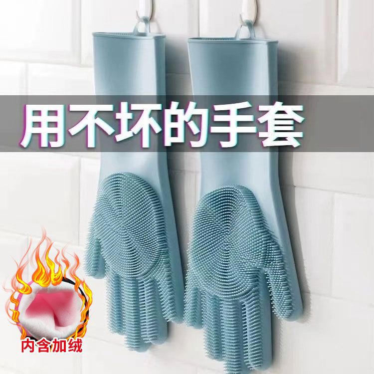 여성용 주방 설거지용 장갑, 겨울철 청소용 실리콘 클리닝, 내구성, 벨벳 모델, 화상 방지스토어 가기