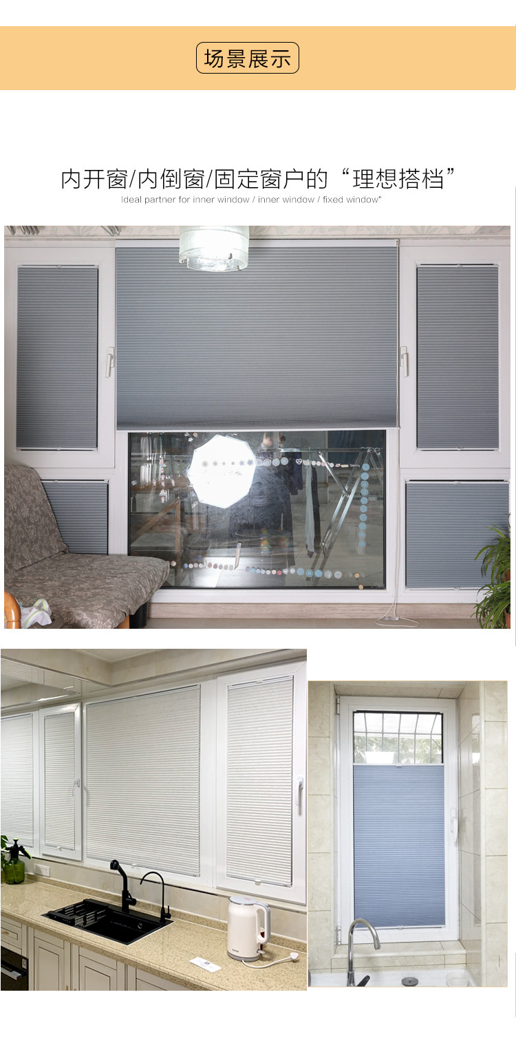 주방 및 욕실 벌집 커튼, 내부 창문, 펀치 없는 역방향 창 커튼, 방수 블라인드, 오르간 커튼, 무료 배송