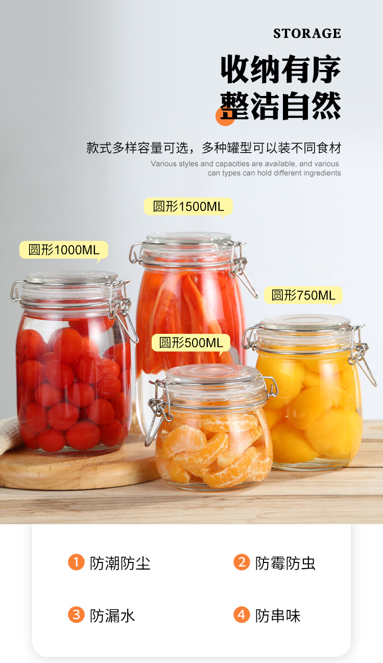 밀봉된 유리병, 식품병, 꿀, 레몬, 패션프루트, 와인, 피클병, 가정용 보관용기스토어 가기