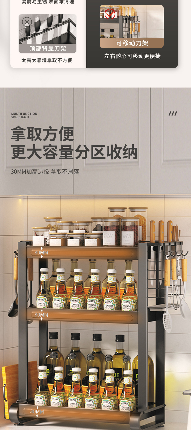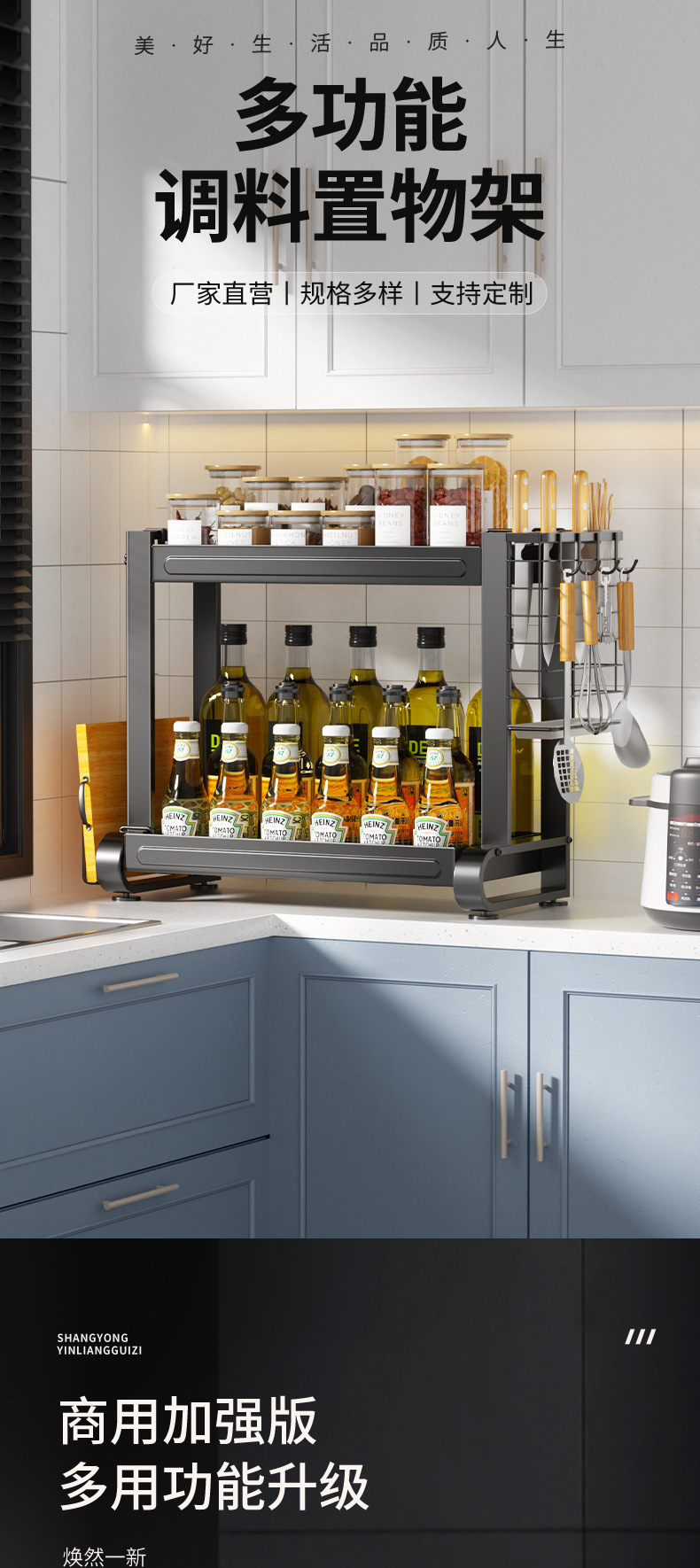 조미료 보관대, 젓가락 및 칼꽂이, 조리대 양념 및 주방용품 보관함, 다층 무타공 소스통, 가정용스토어 가기