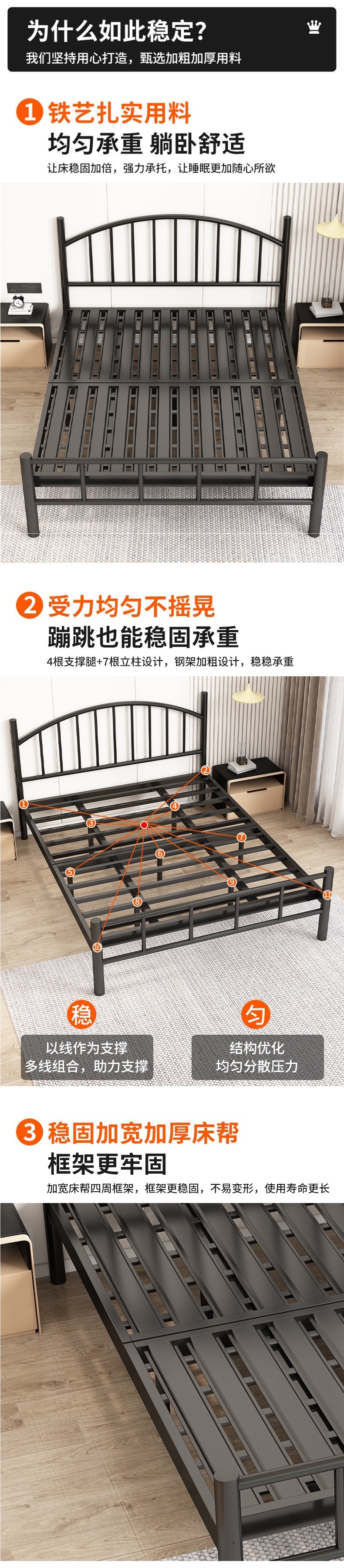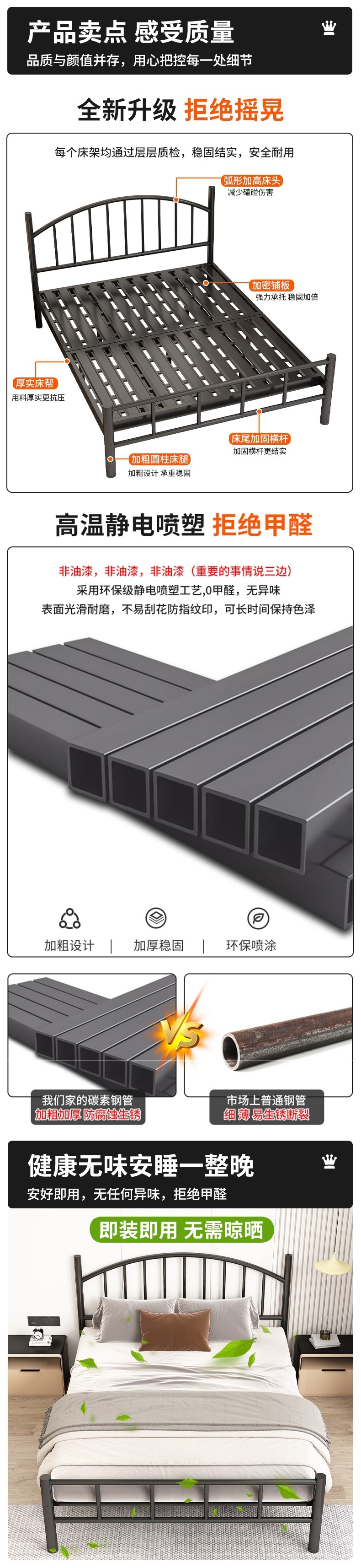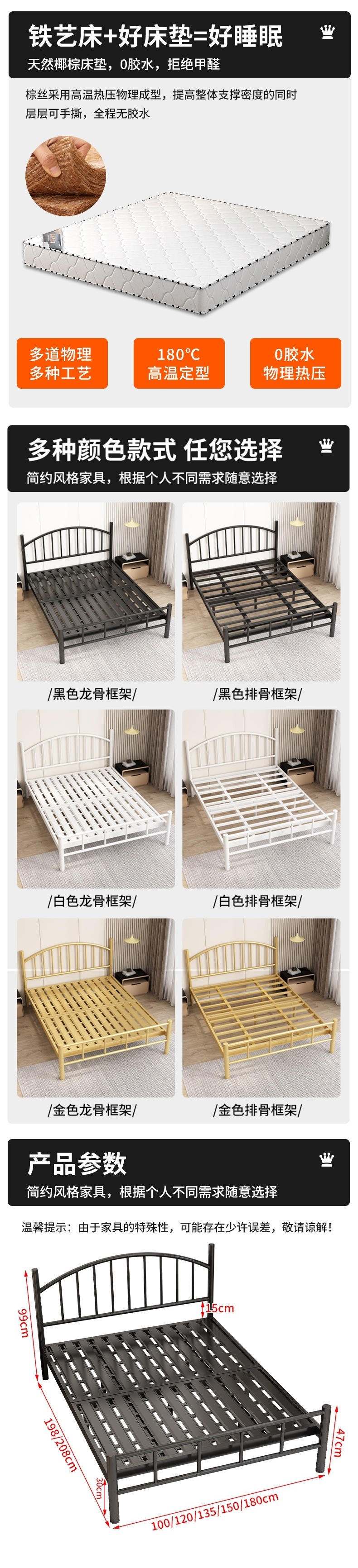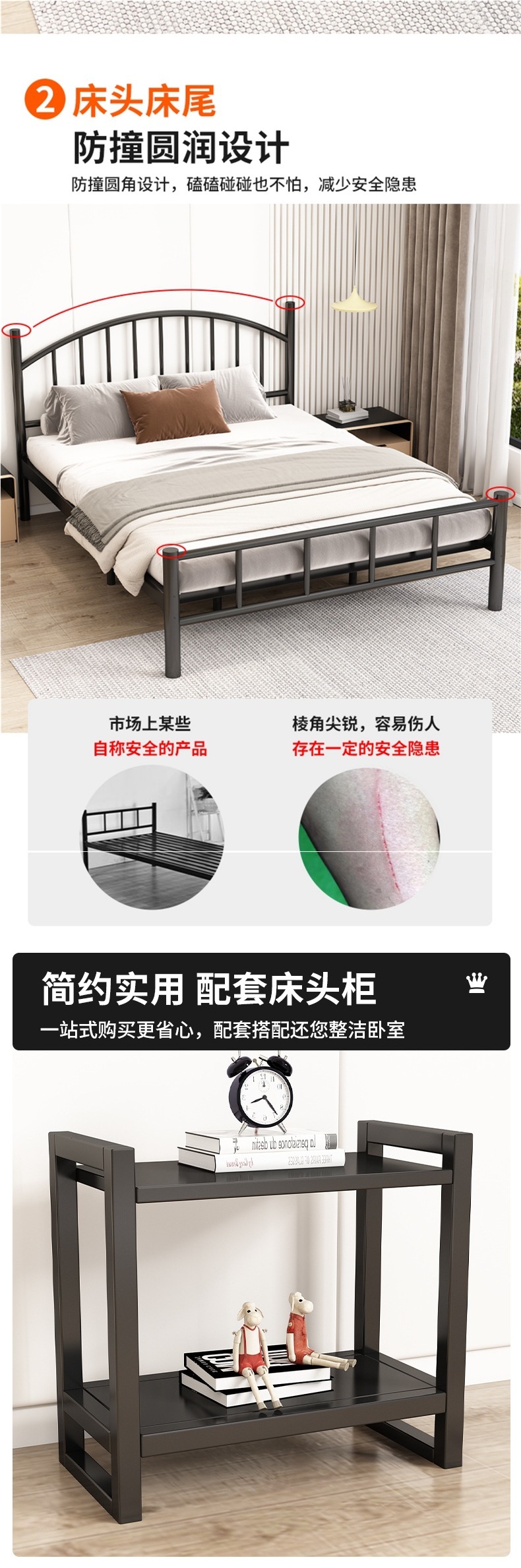 철제 더블 침대 현대 가정용 1.8m 철제 침대 1.5m 기숙사 싱글 침대 인터넷 연예인 임대 집 철제 프레임 침대