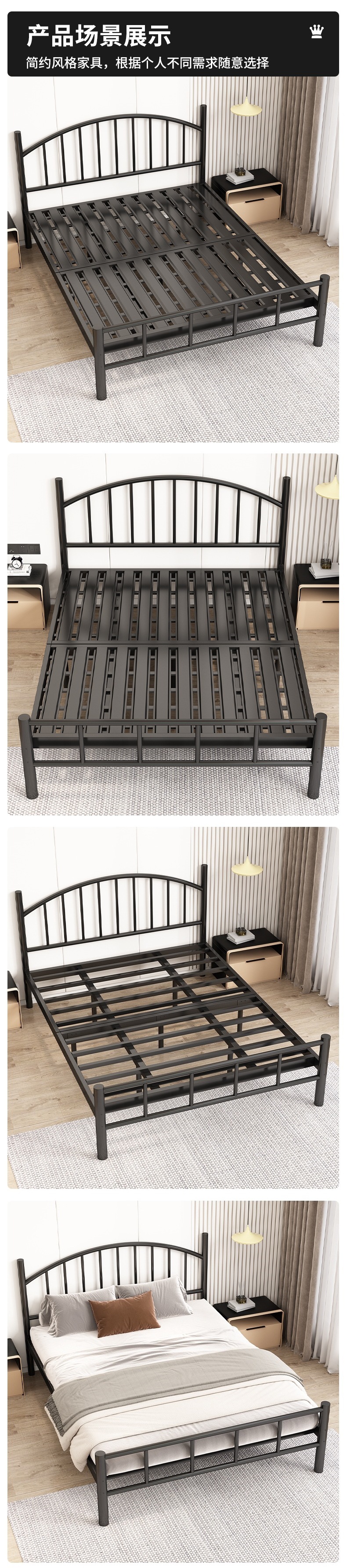 철제 더블 침대 현대 가정용 1.8m 철제 침대 1.5m 기숙사 싱글 침대 인터넷 연예인 임대 집 철제 프레임 침대스토어 가기
