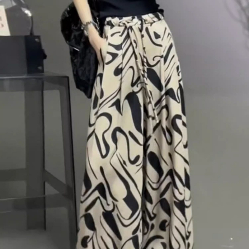 여성용 중국 스타일 꽃무늬 바지, 트렌디한 여름 신상품, 루즈하고 슬림하며 드레이프한 스트레이트 드로스트링 디자인, 틈새 바지, 와이드 팬츠