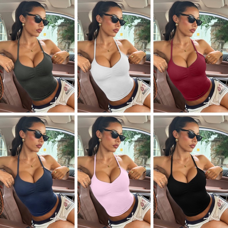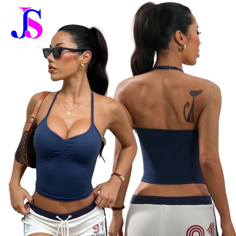 Jinshi 6 색 DFYNE 홀터넥 요가 조끼 나일론 피트니스 브라 여성용 충격 방지 푸시 업 스포츠 브라스토어 가기