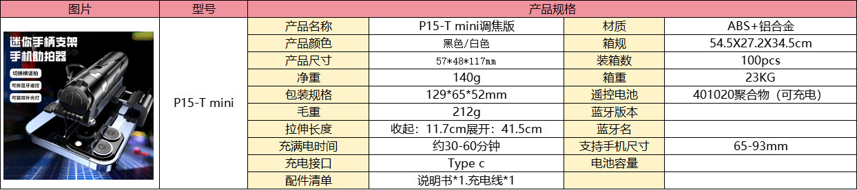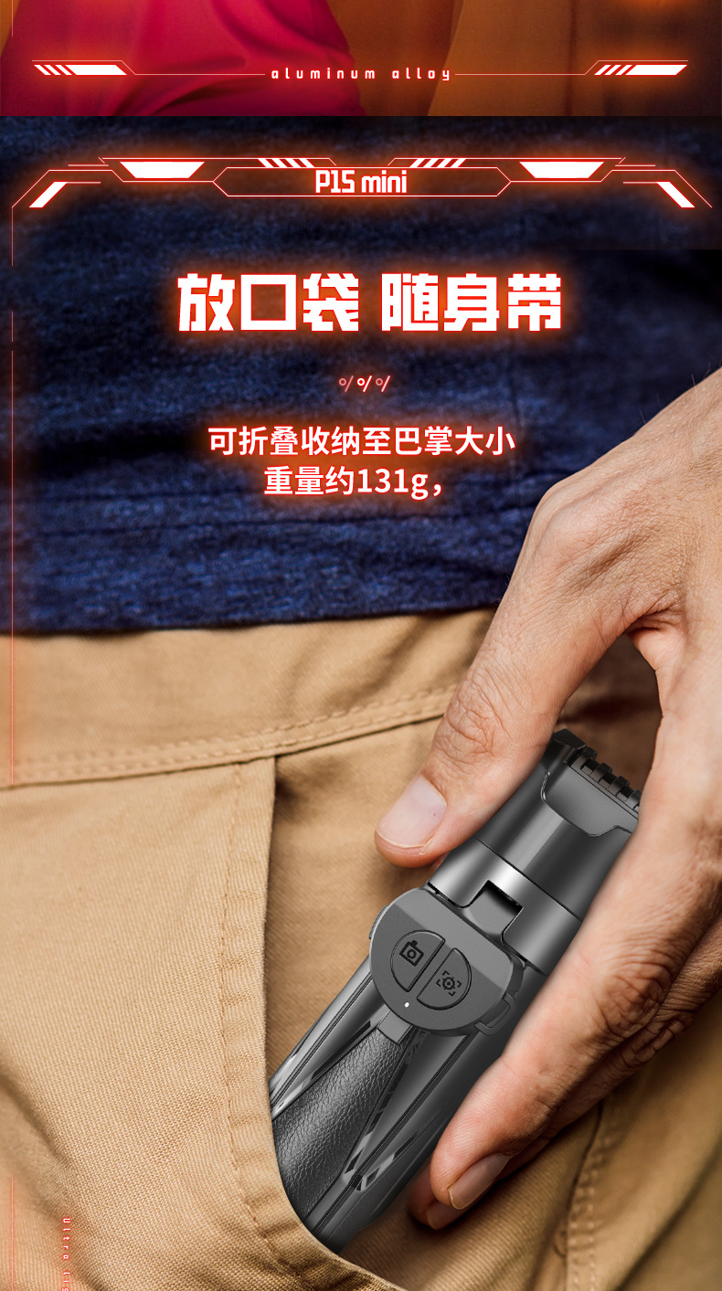 새로운 P15T 줌이 가능한 셀카봉 블루투스 휴대폰 사진 홀더 미니 휴대용 2025 데스크탑 삼각대