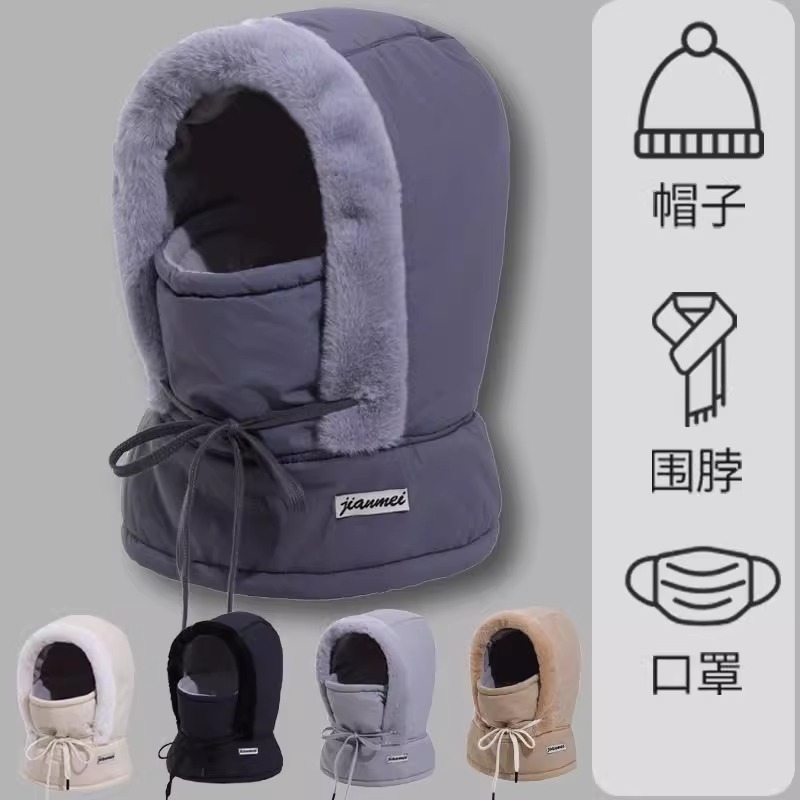 겨울용 따뜻한 레이펑 모자 남성용 큰 챙 방풍 플러스 벨벳 두꺼운 목도리 일체형 마스크 여성용 자전거 타기용스토어 가기