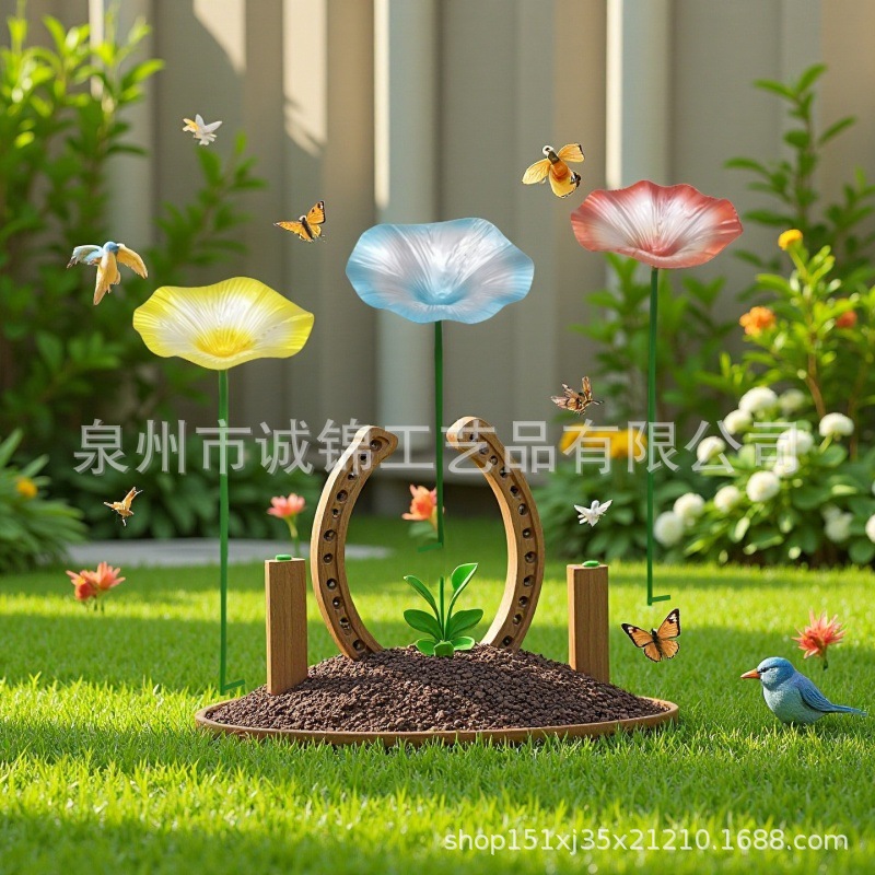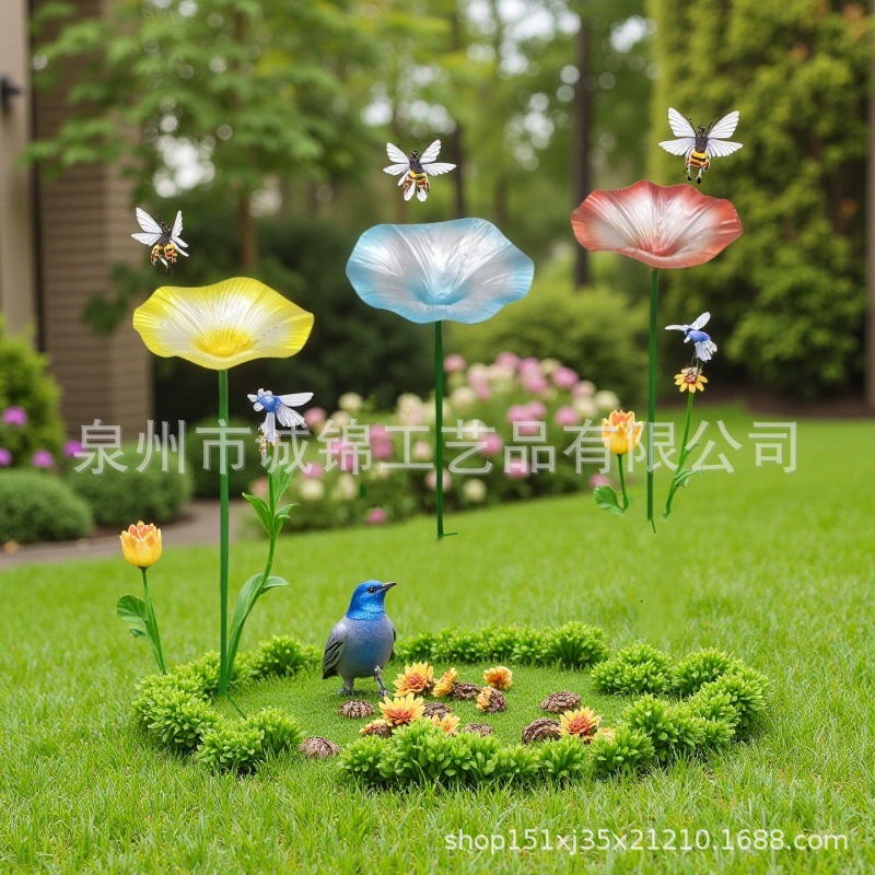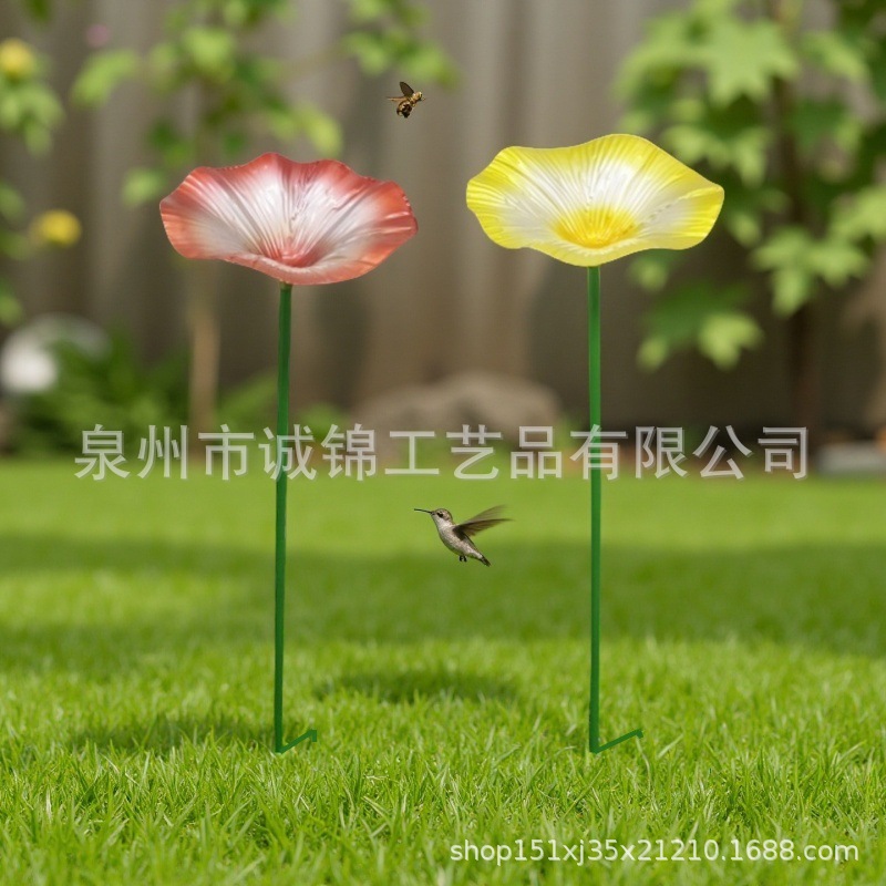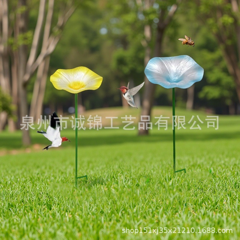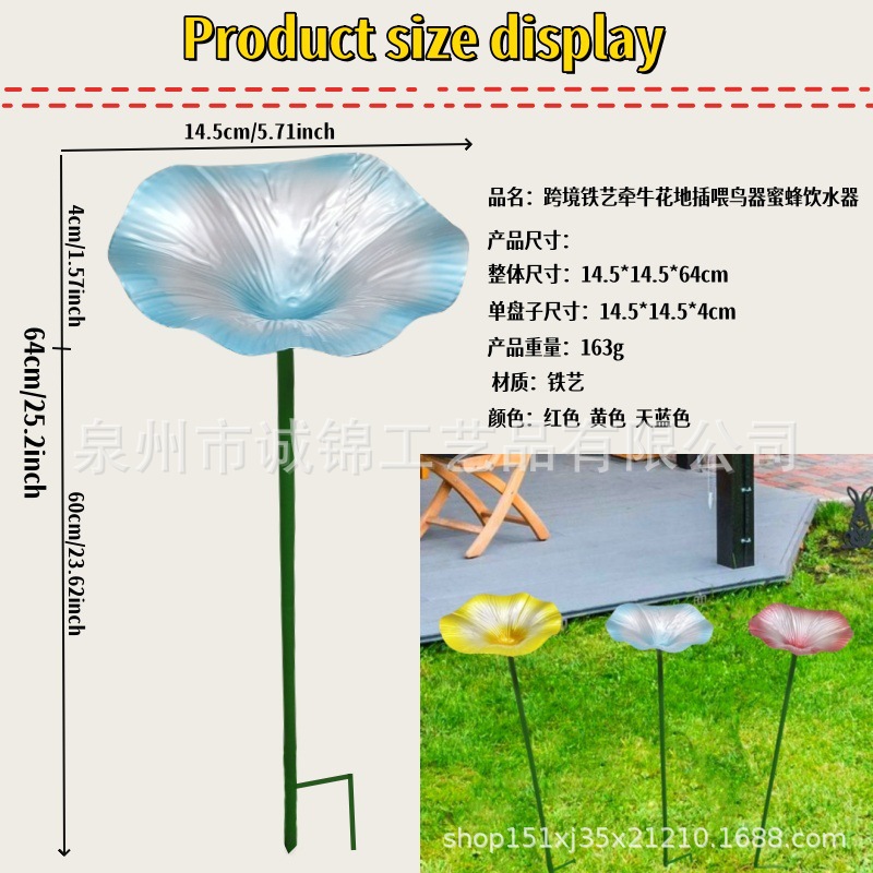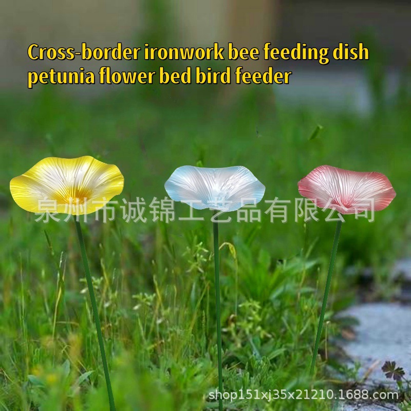 跨境新品蜜蜂蝴蝶饮水器野鸟食盆牵牛花地插喂鸟器