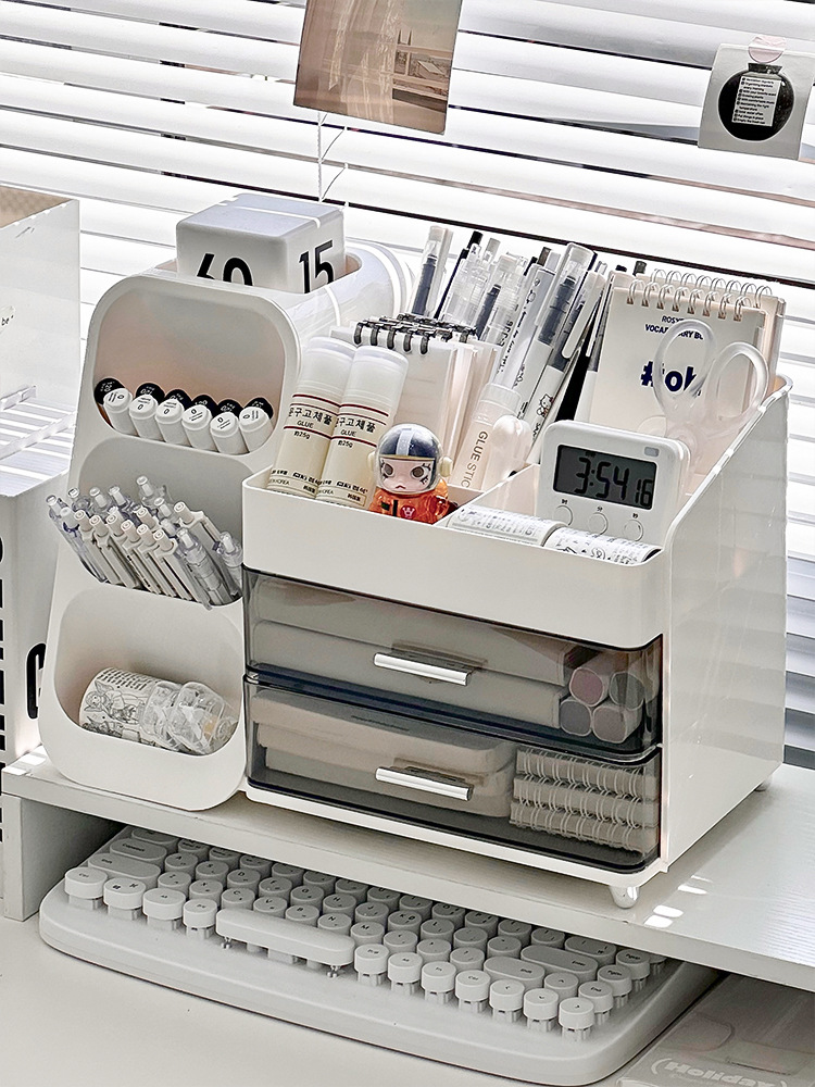 서랍형 데스크탑 수납함 학생 사무실 책상 문구 잡화 수납함 대용량 정리 펜 홀더 상자