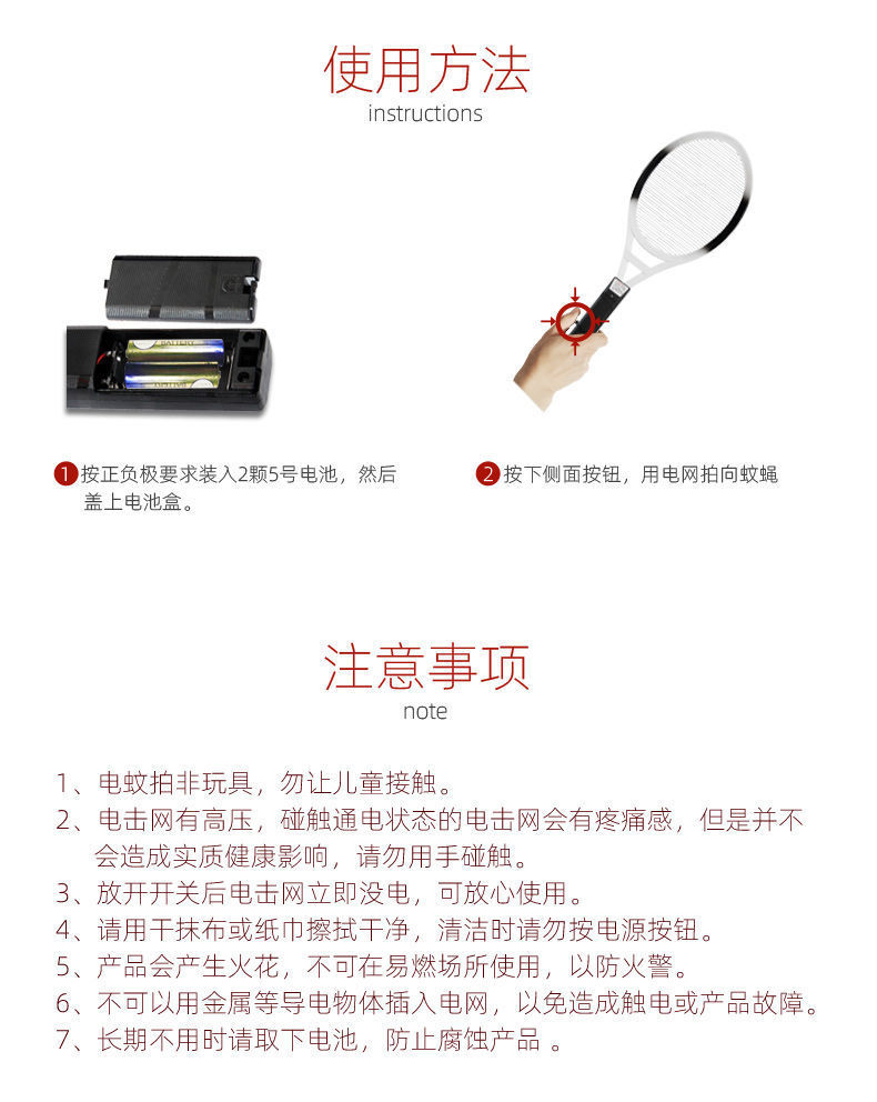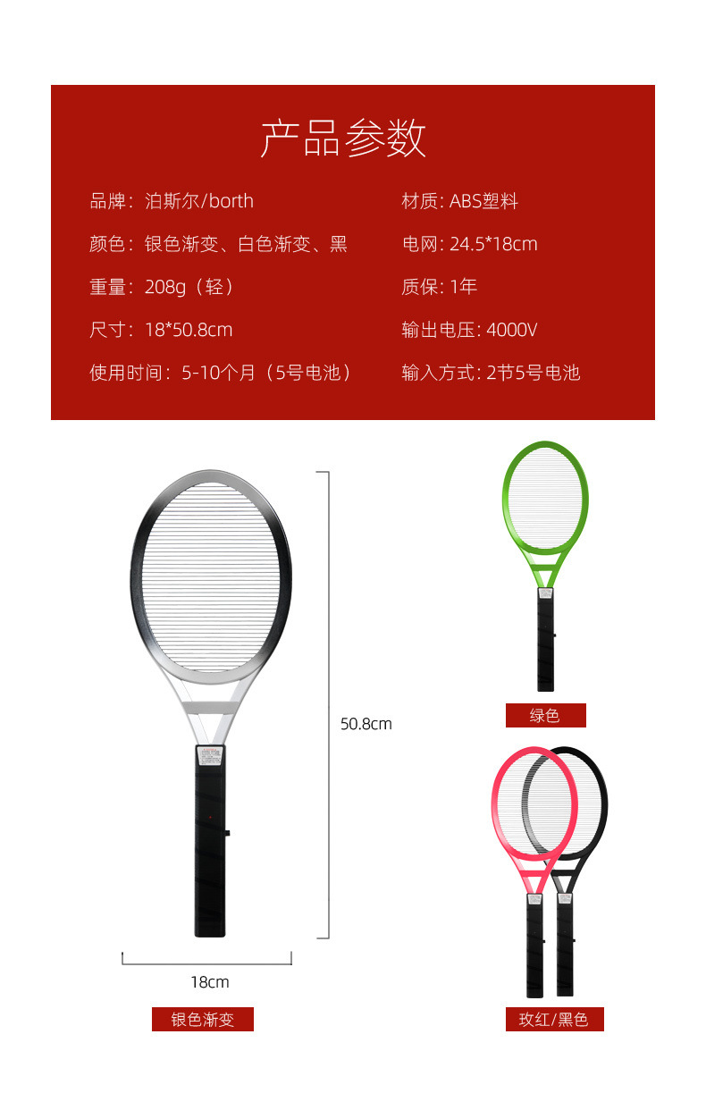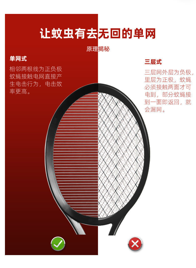 건전지형 전기 모기채, 가정용 파리채, 강력 비충전식 단일망 모기 및 바퀴벌레 살해, 구식 단층 무역스토어 가기