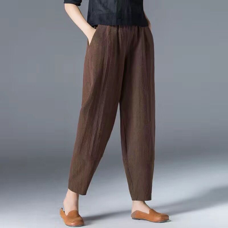 여성용 면 및 린넨 하렘팬츠, 여름 얇은 당근팬츠, 활용도 높은 캐주얼팬츠, 루즈한 라지사이즈 하이웨이스트 나인포인트 스트레이트팬츠