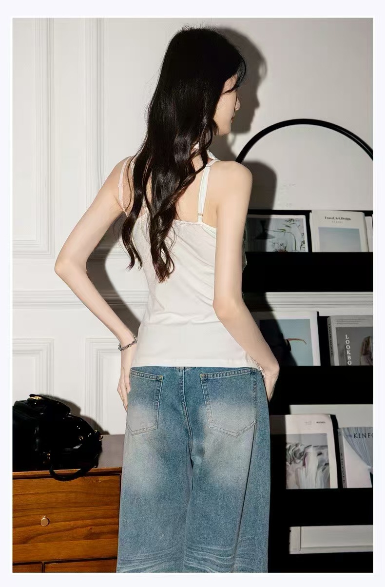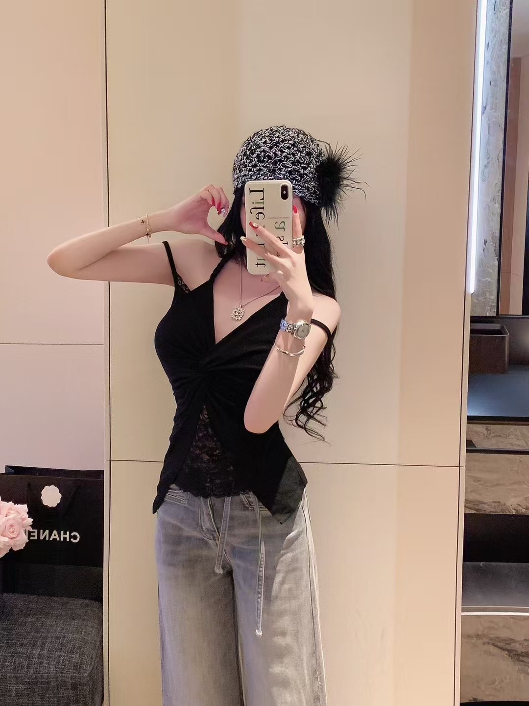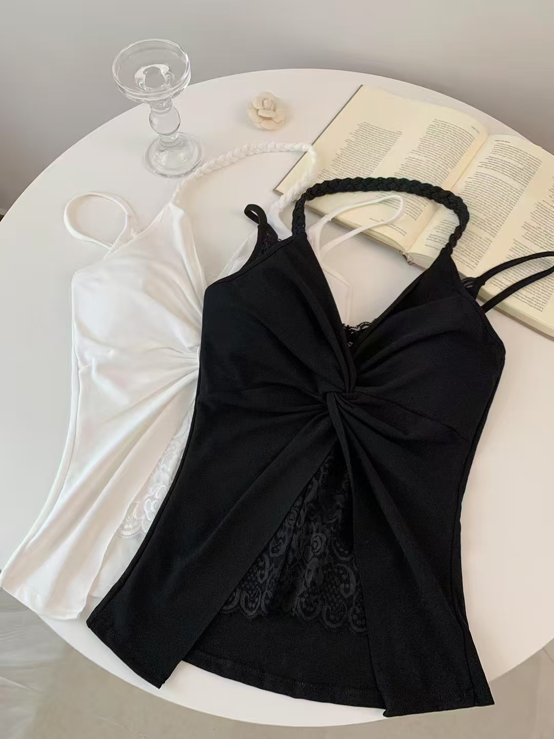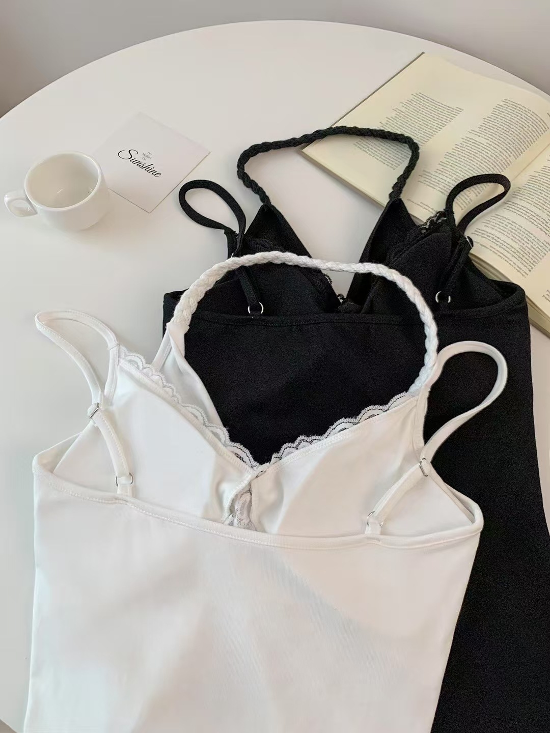 여름 여성을 위한 흰색 홀터넥 캐미솔, 가슴 패드가 있는 레이스 섹시한 핫걸 짧은 디자인 아우터 탑