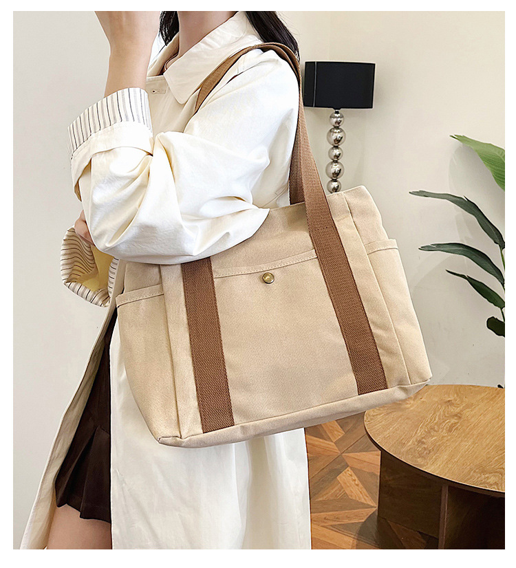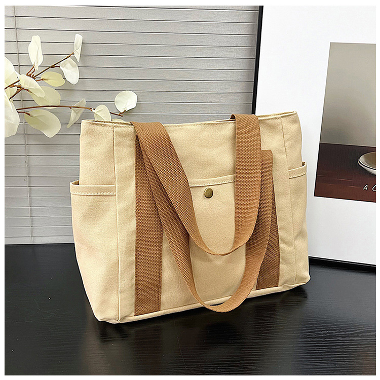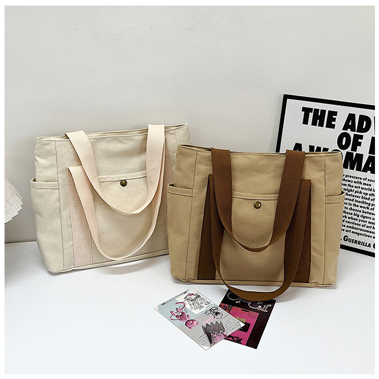 이중주머니와 지퍼가 달린 안감 캔버스백, 업그레이드된 대용량 가방, 토트백, 캔버스백, 다용도 대학생 가방스토어 가기