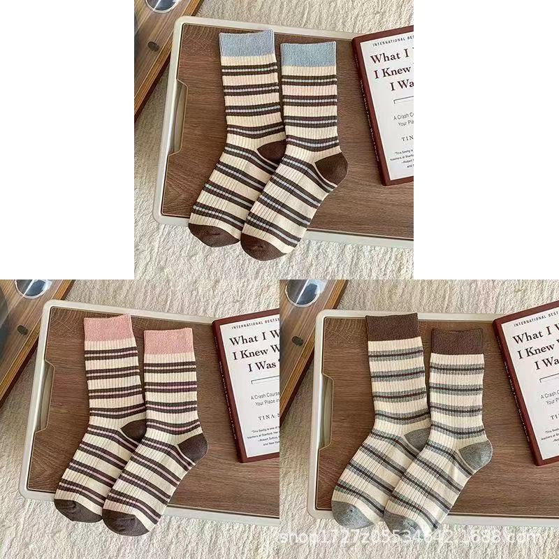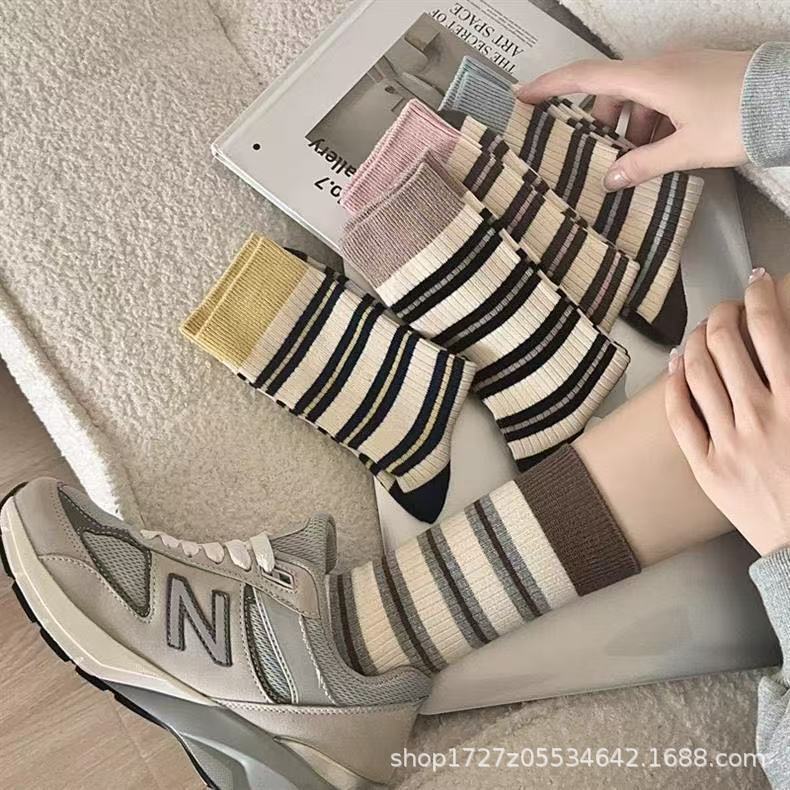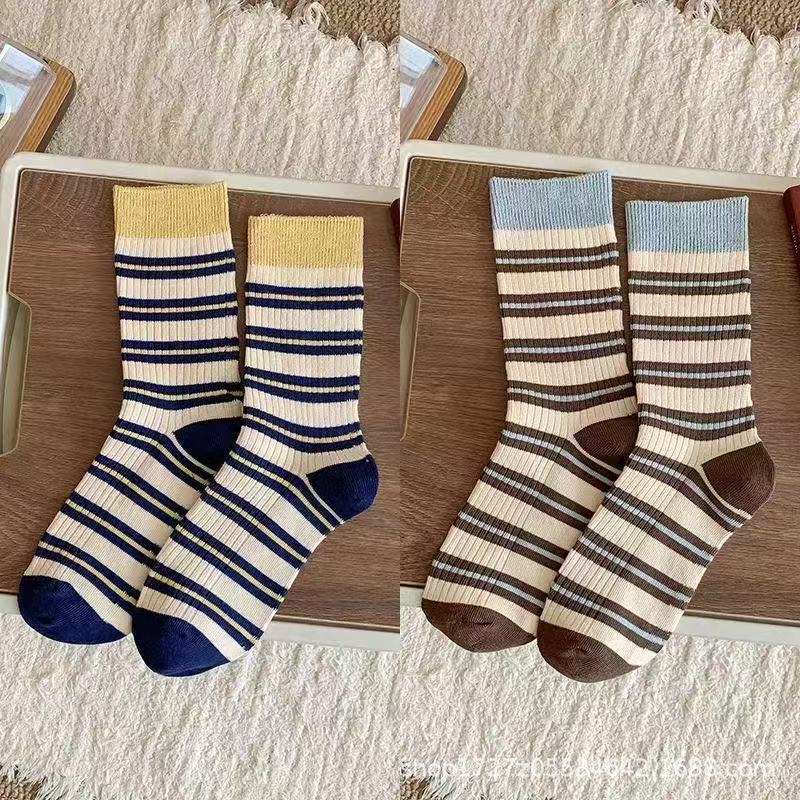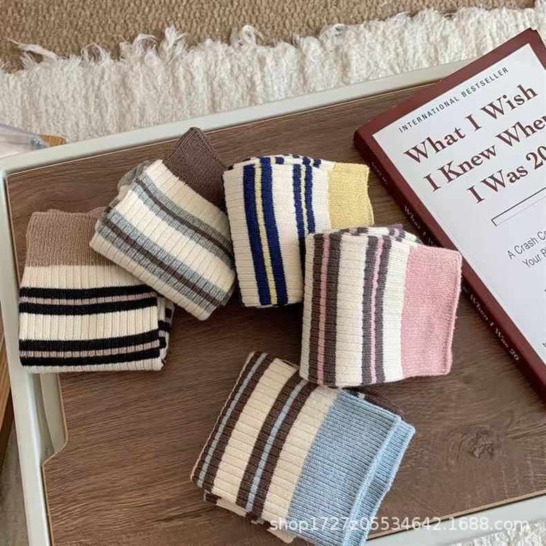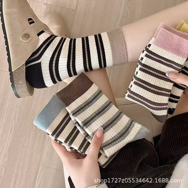 여성용 중목 양말, 스트라이프, 다용도 롱 양말, 트렌디한 인스 스타일, 러플 양말, 가을 겨울 캐주얼 여성 양말스토어 가기
