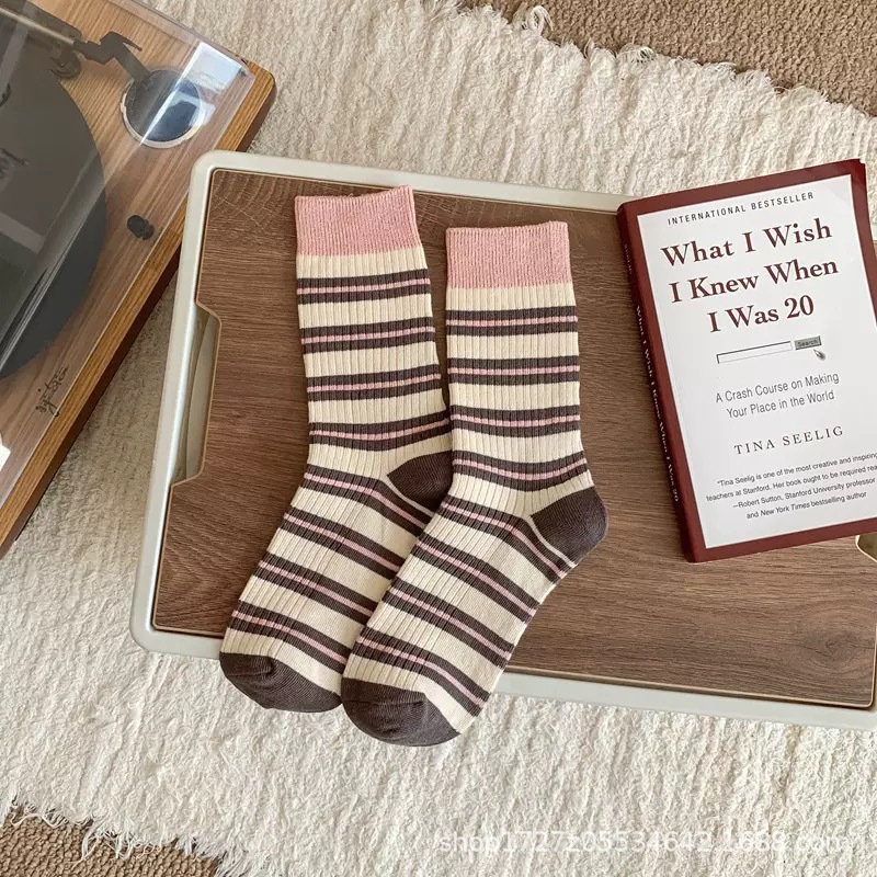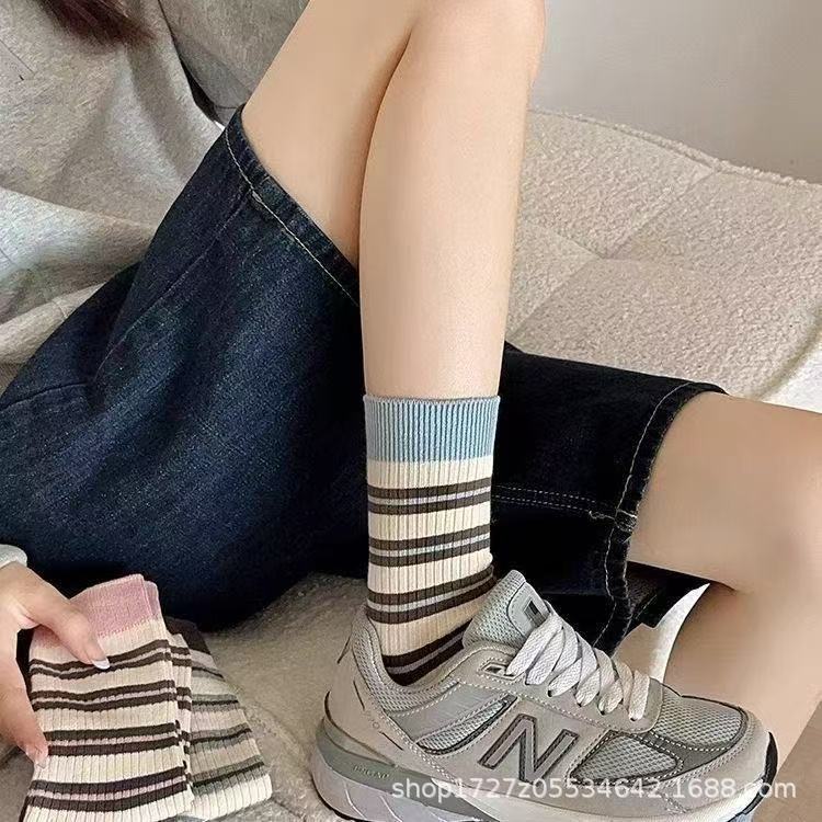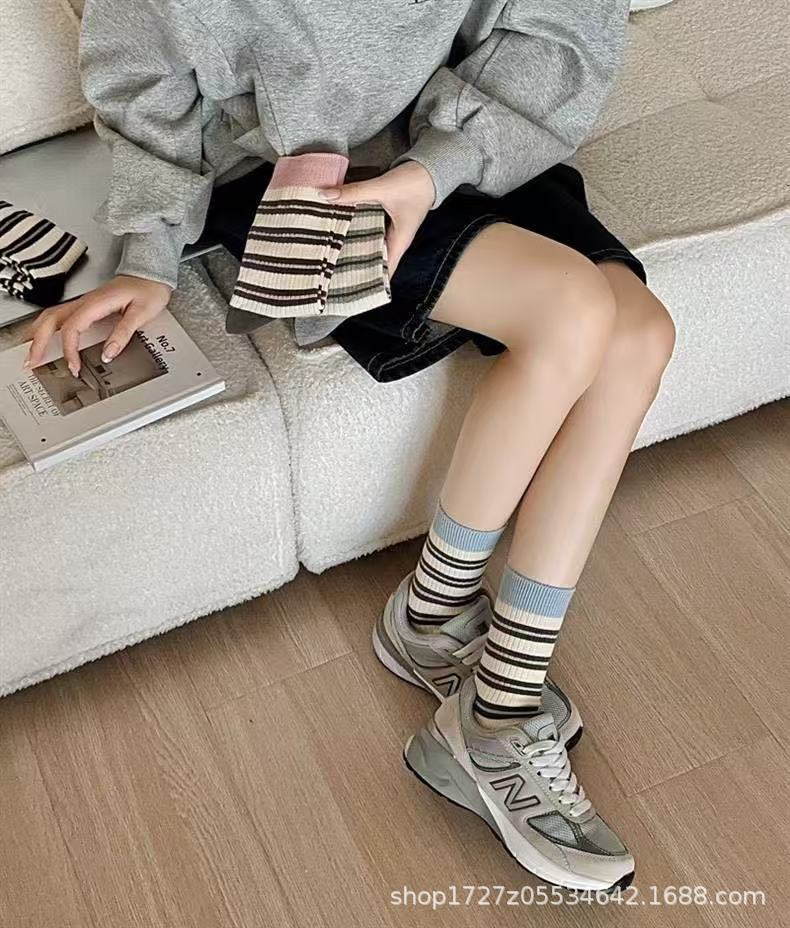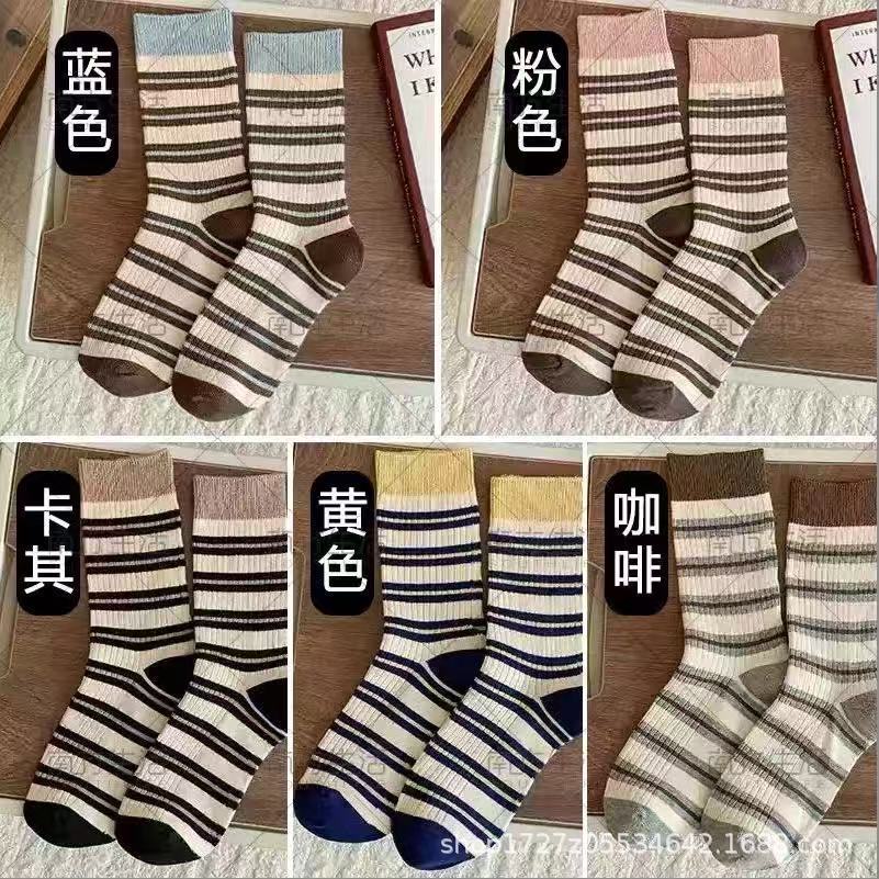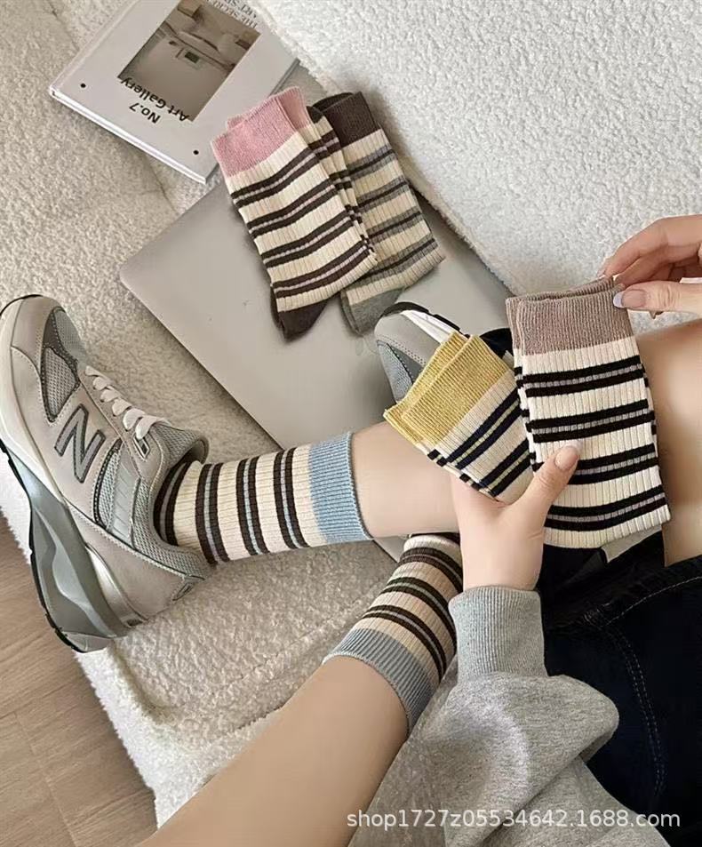 여성용 중목 양말, 스트라이프, 다용도 롱 양말, 트렌디한 인스 스타일, 러플 양말, 가을 겨울 캐주얼 여성 양말스토어 가기