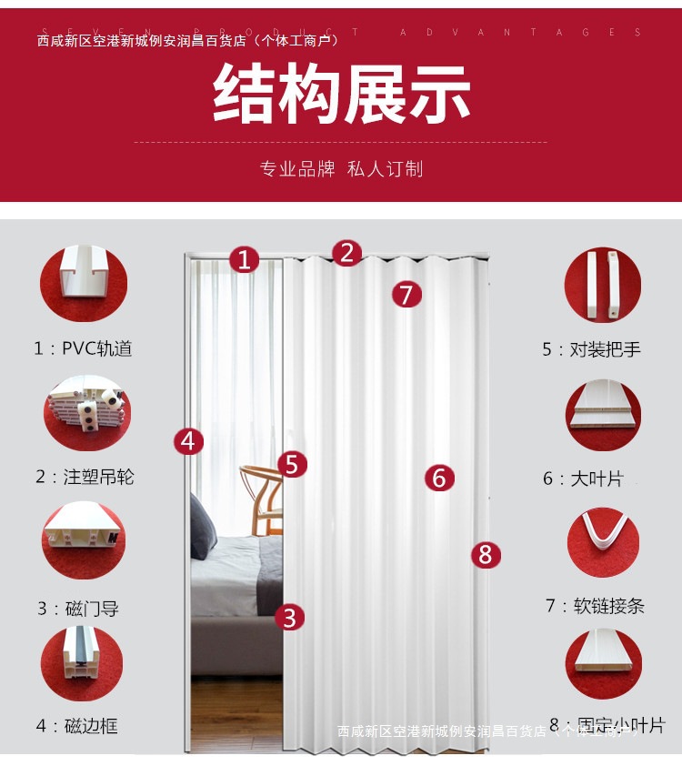 PVC 접이식 문 파티션 거실 상점 슬라이딩 침실 욕실 루버 도어 실내 발코니 주방 도어스토어 가기