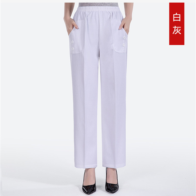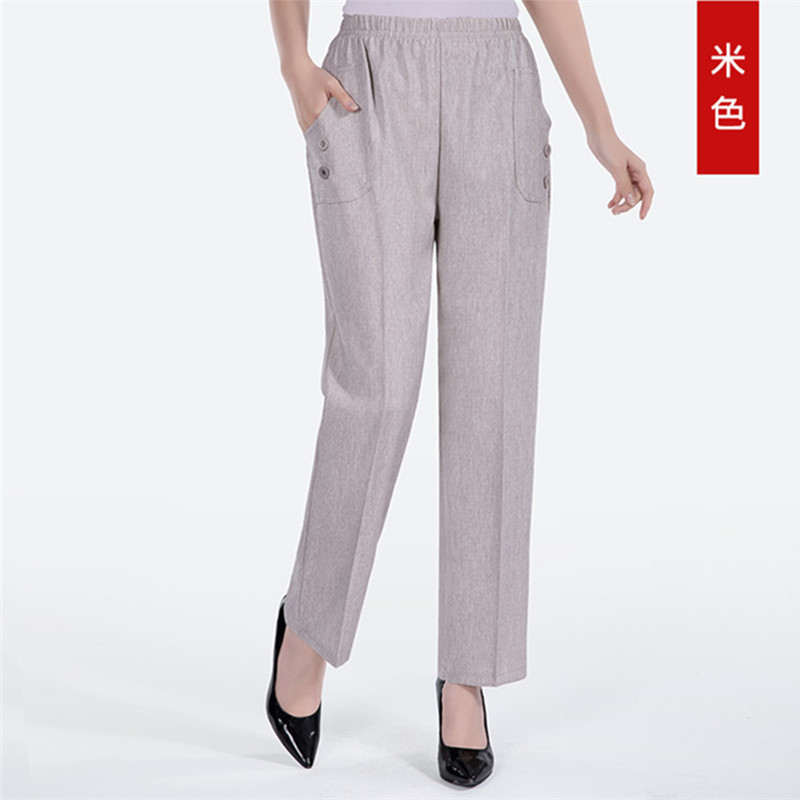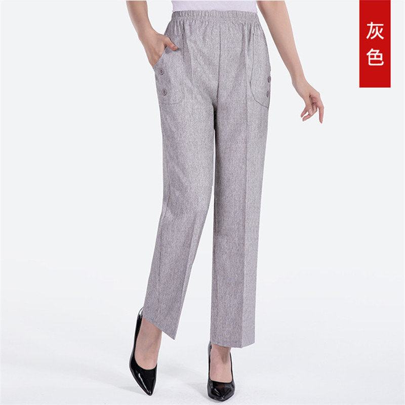 중노년 여성 바지 봄 여름 얇은 엄마 면 린넨 캐주얼 바지 노인 하이 웨이스트 루즈 린넨 스트레이트 바지