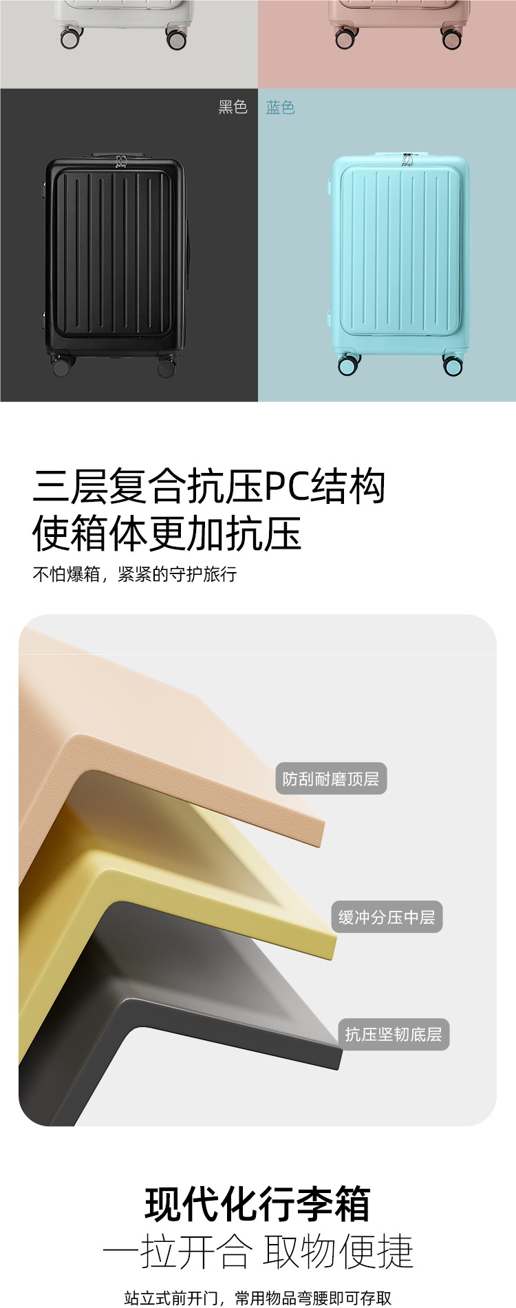 전면 개방형 여행가방 20inch 소형 탑승 가방 24inch 소년 소녀용 대용량 비밀번호 여행가방 트롤리 가방스토어 가기