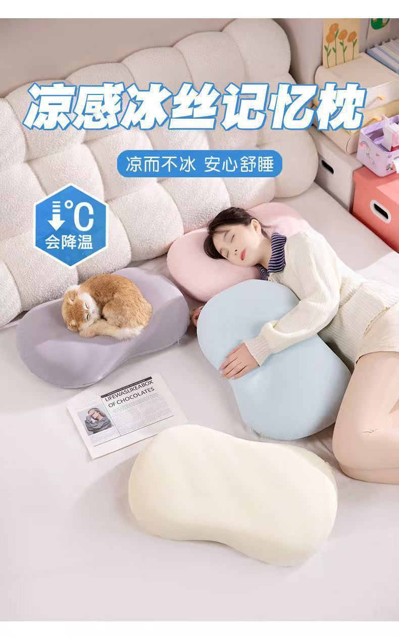 아이스 실크 고양이 배 베개 메모리 폼 베개 여름 배 베개 경추 수면 사무실 침대 베개 쿠션 베개