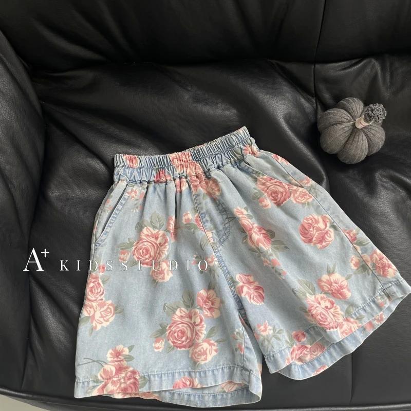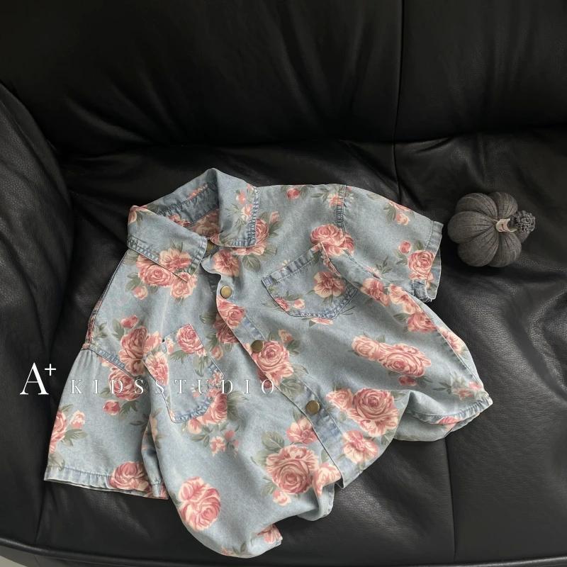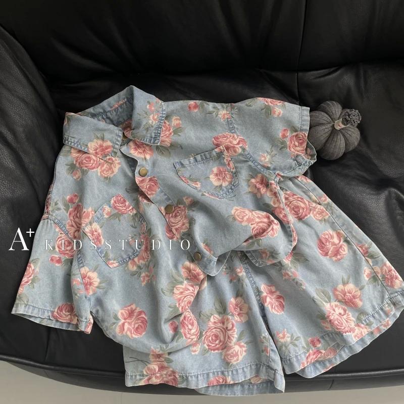 소년과 소녀 복고풍 인쇄 양복 2025 여름 스타일 소년과 소녀 유행 캐주얼 반팔 반바지 셔츠 세트