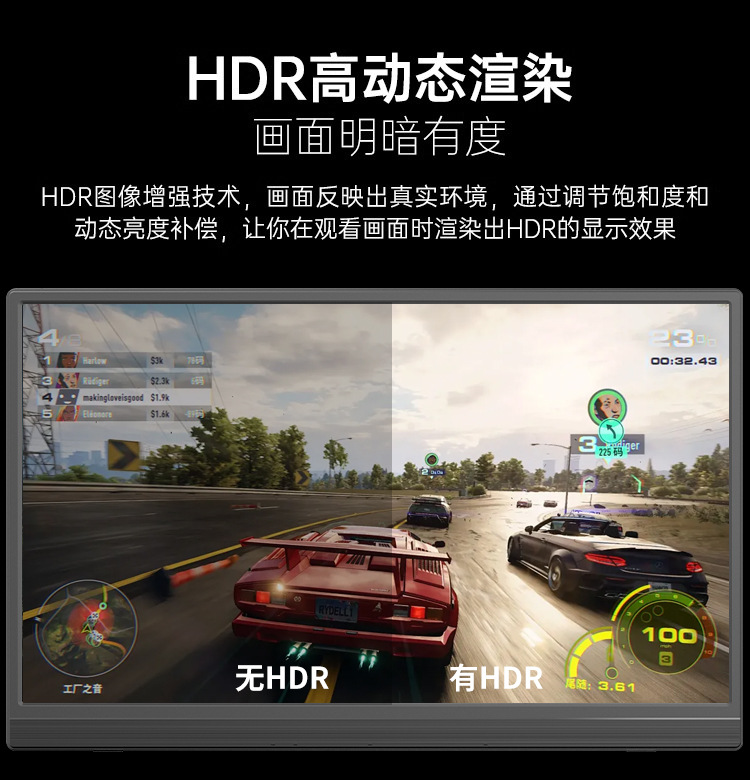 15.6inch 휴대용 모니터 1080p 휴대 전화 컴퓨터 노트북 확장 보조 화면 회전 스탠드 모니터