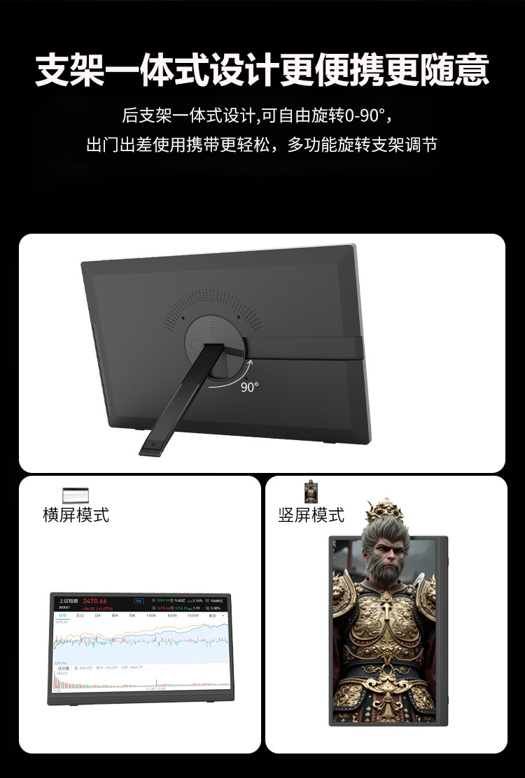 15.6inch 휴대용 모니터 1080p 휴대 전화 컴퓨터 노트북 확장 보조 화면 회전 스탠드 모니터스토어 가기