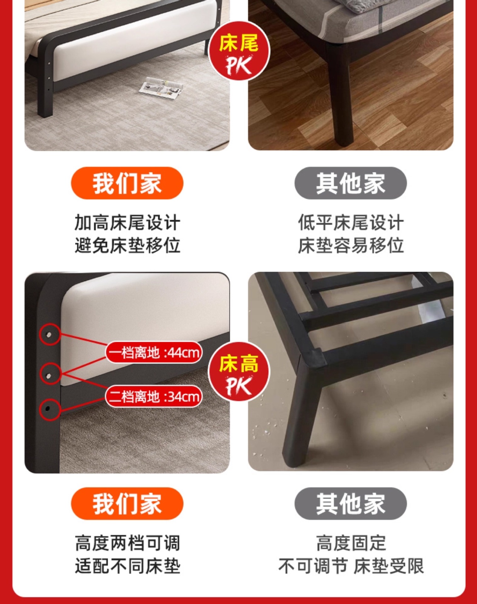 • [고급 소프트커버 하이엔드 모델] 블랙 침대, 화이트 소프트커버 + 8cm 코코넛팜 매트리스(조절가능)