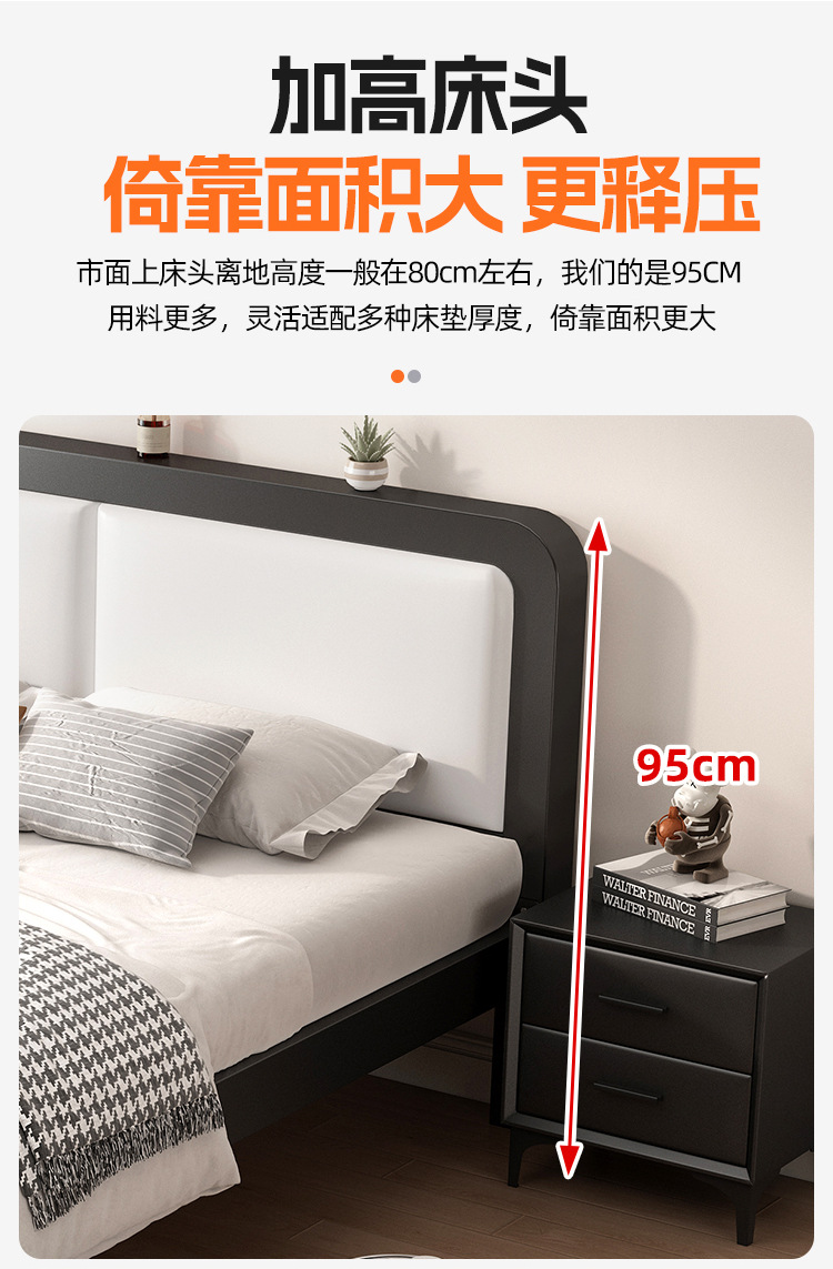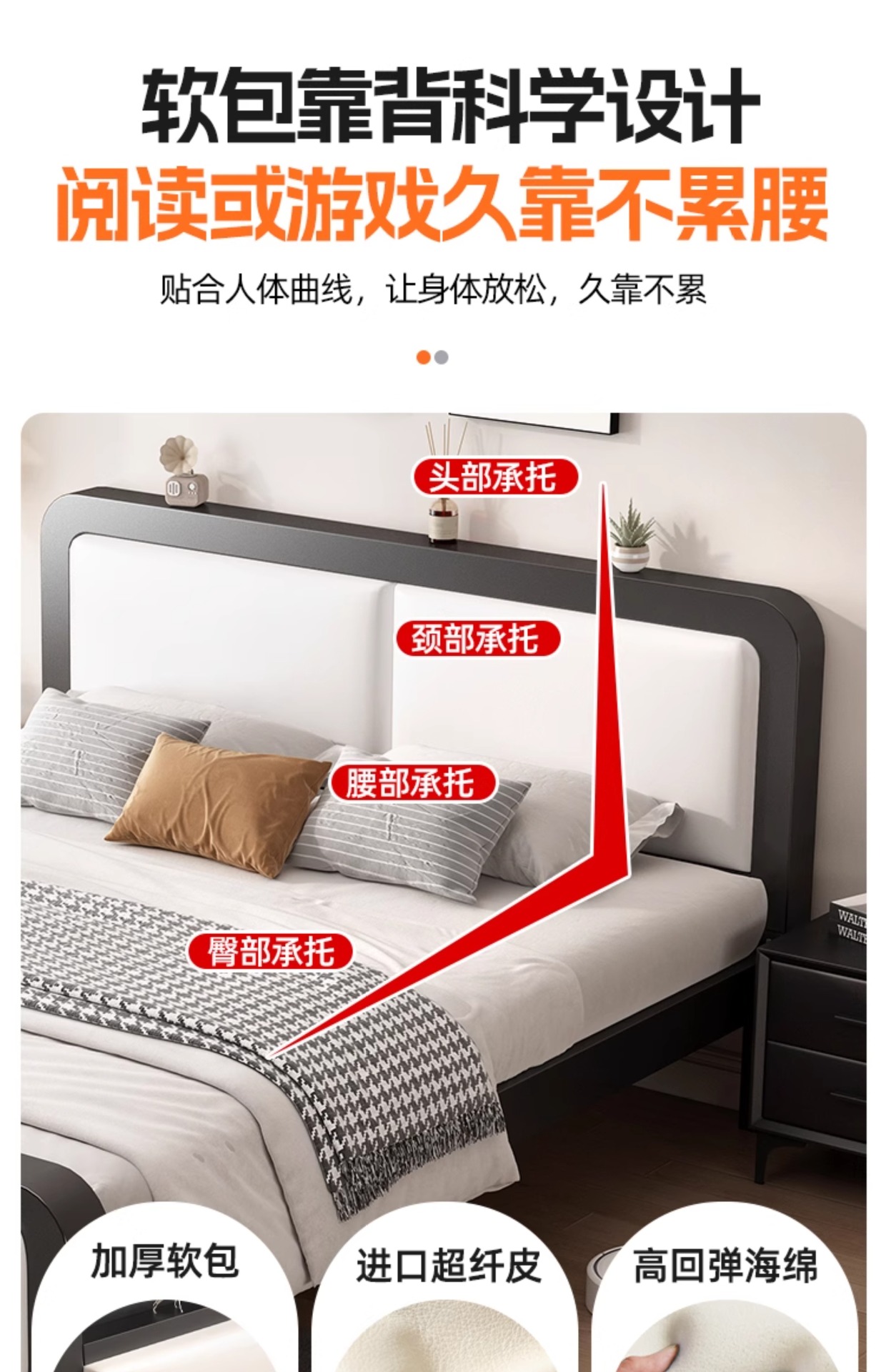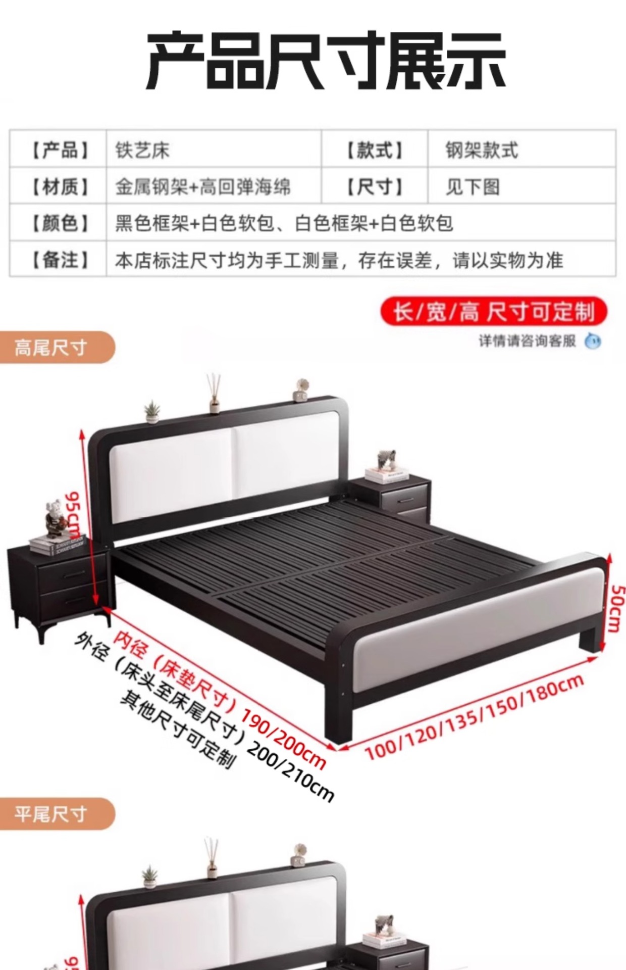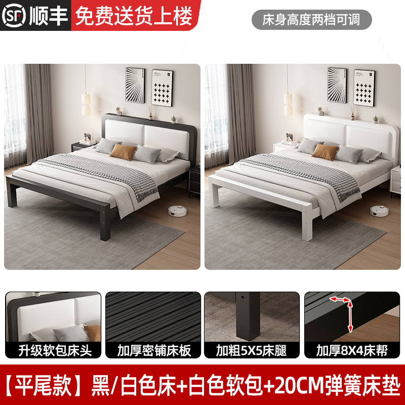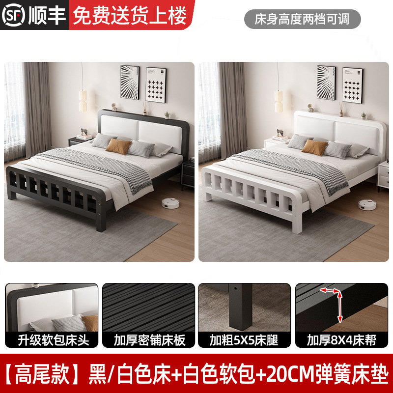 • [럭셔리 소프트백 하이엔드 모델] 블랙/화이트 침대 + 화이트 소프트백 + 20cm 스프링 매트리스(조절 가능) [색상 비고는 고객센터로 문의해주세요]