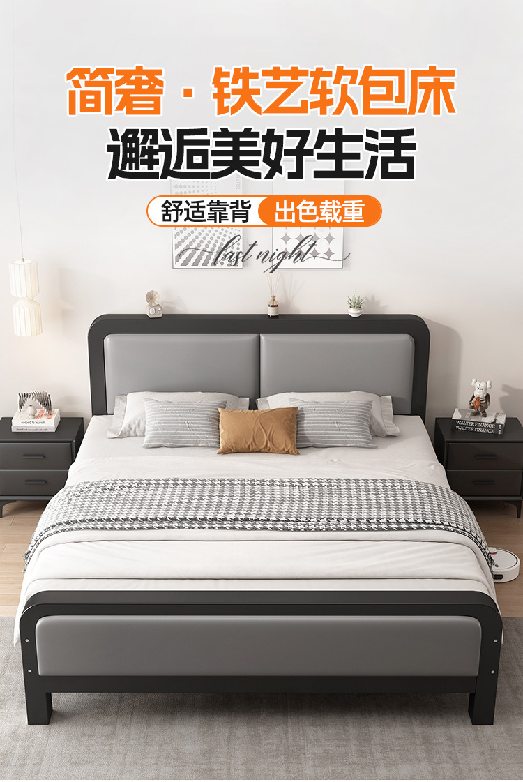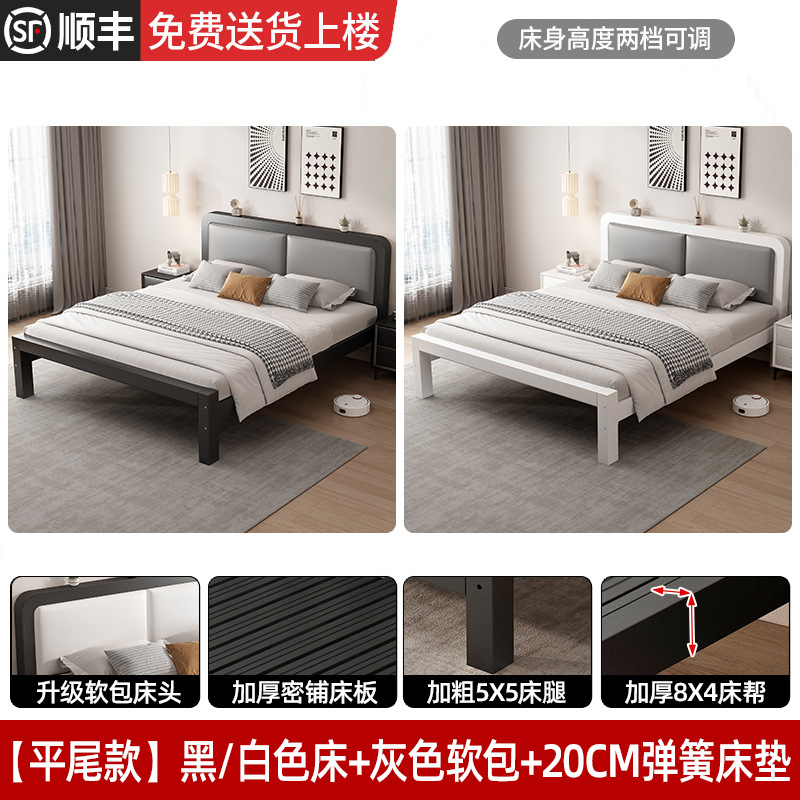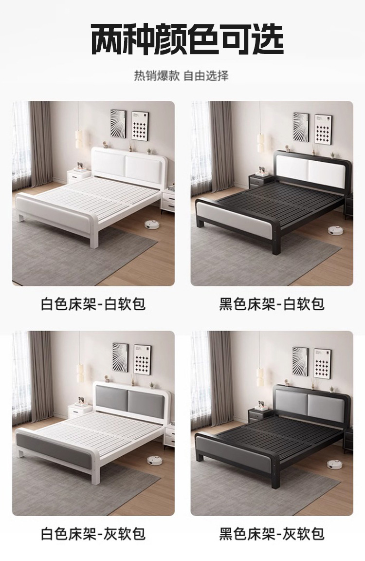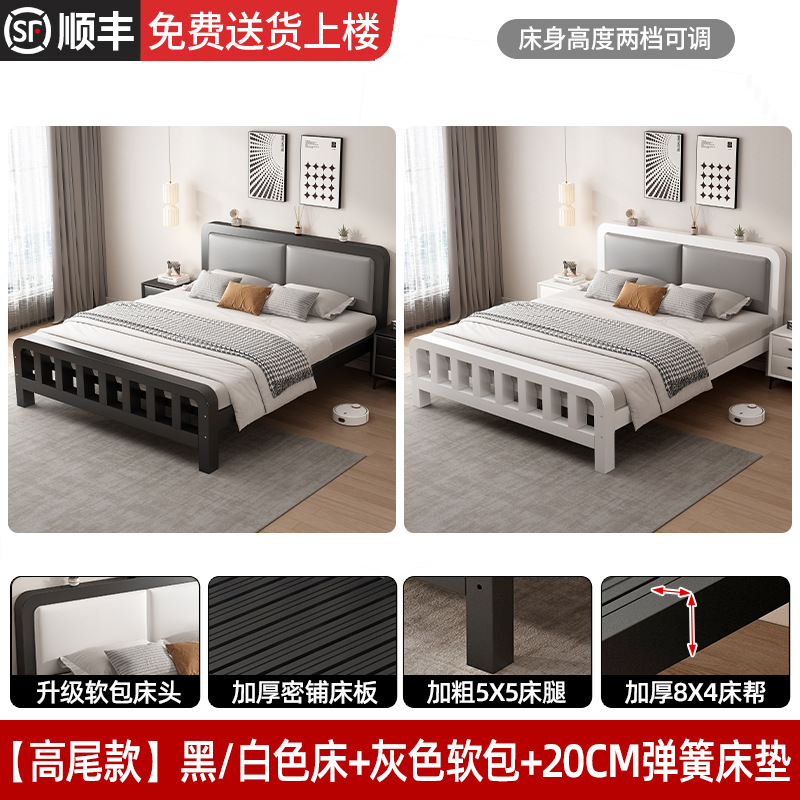 • [고급 소프트백 하이엔드 모델] 블랙/화이트 침대 + 그레이 소프트백 + 20cm 스프링 매트리스(조절 가능) [색상 비고는 고객센터로 문의해주세요]