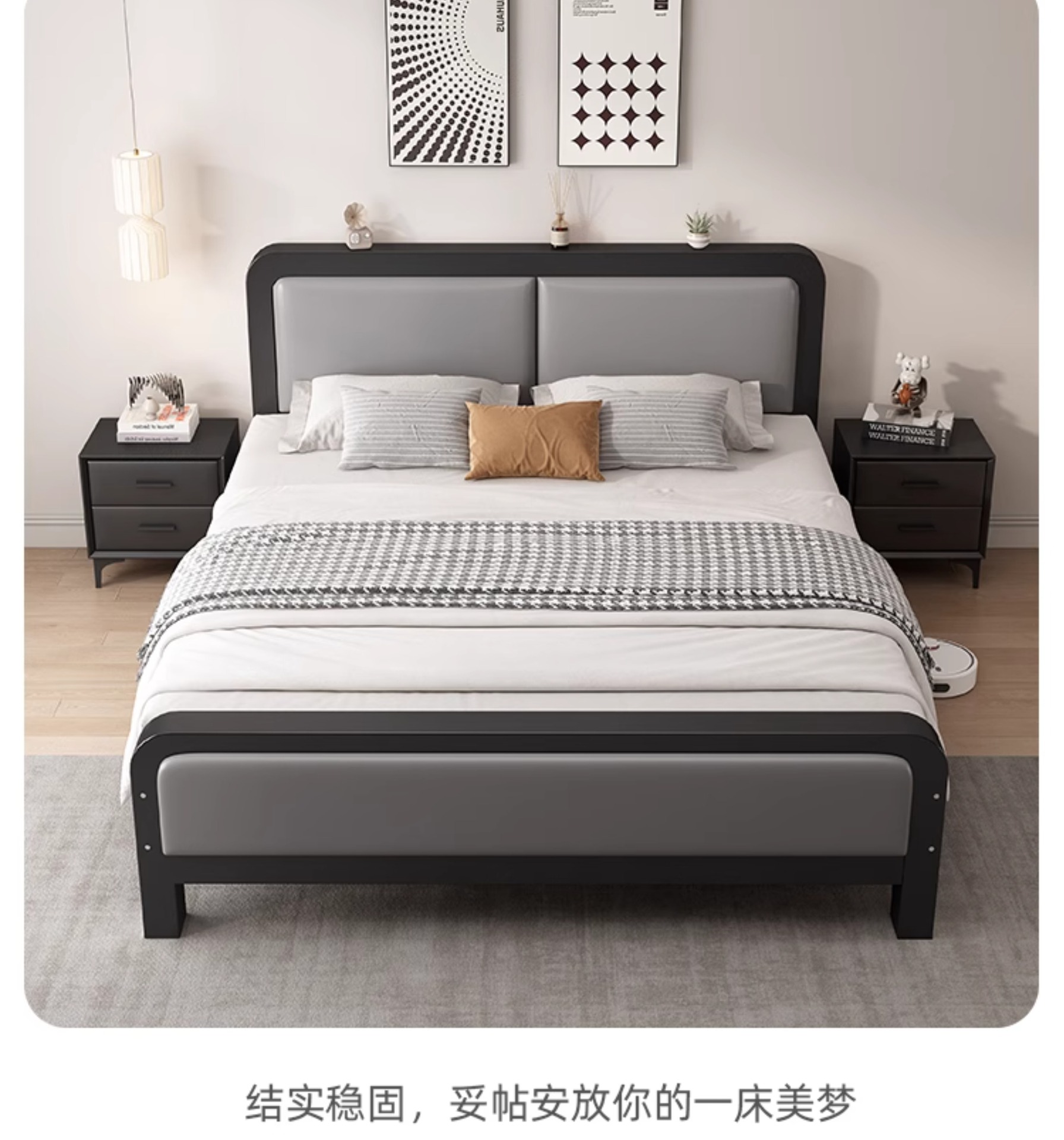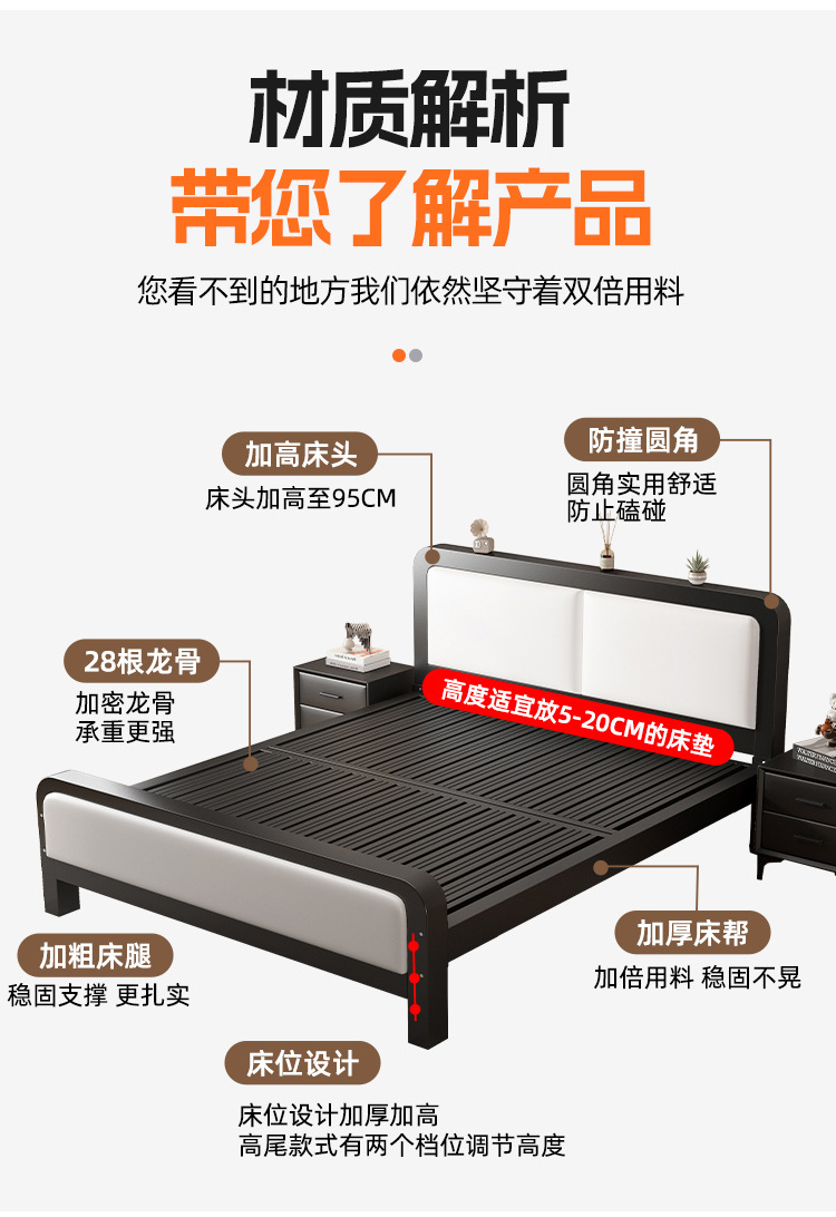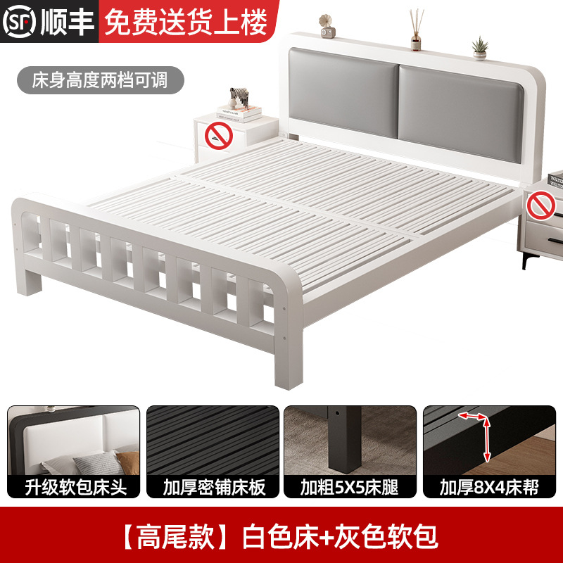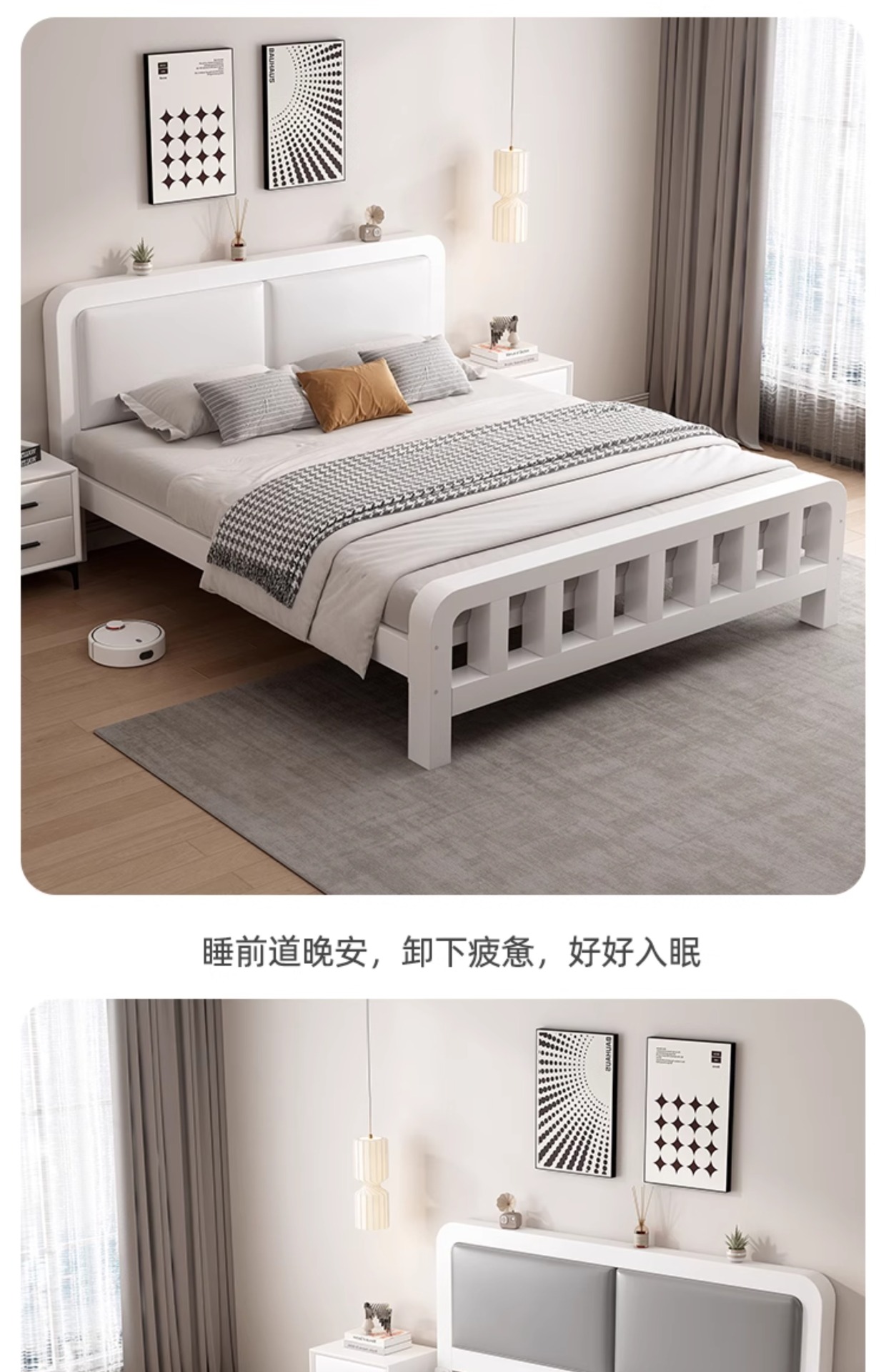 • [고급 소프트백 하이엔드 모델] 블랙/화이트 침대 + 그레이 소프트백 + 20cm 스프링 매트리스(조절 가능) [색상 비고는 고객센터로 문의해주세요]