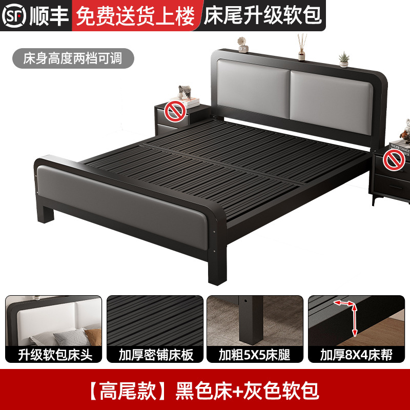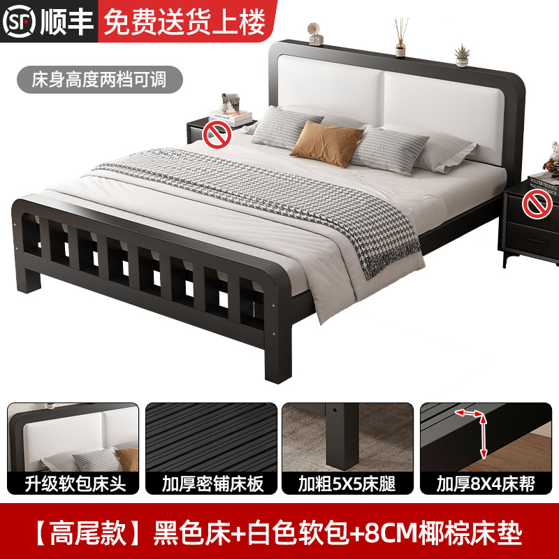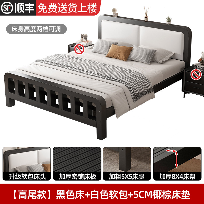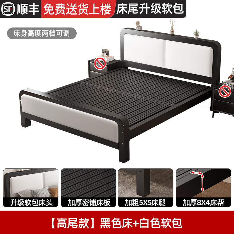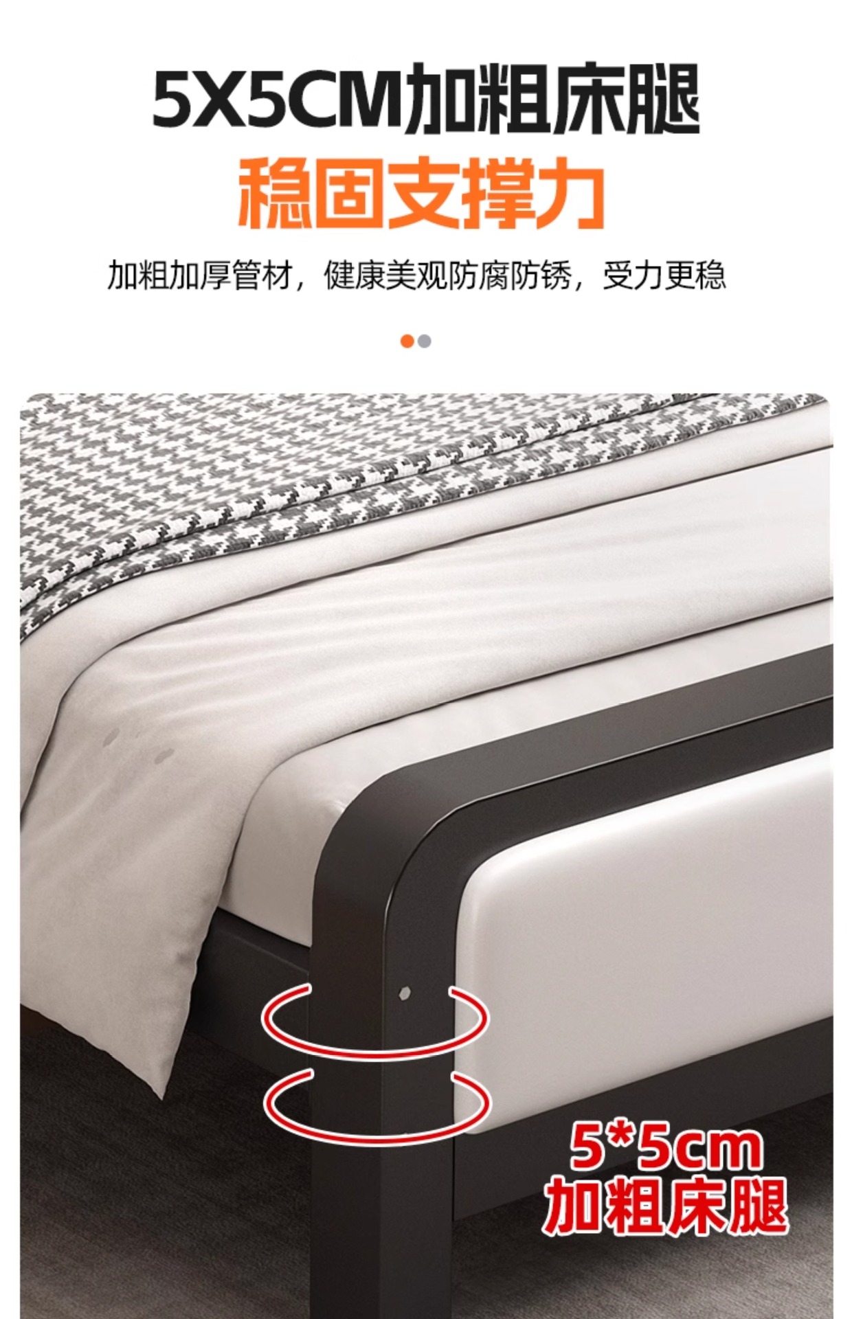 가정용 침실용 철제 침대 더블 침대 스테인레스 스틸 두꺼워지고 강화된 기숙사 싱글 임대실 철제 침대 철제 프레임 침대
