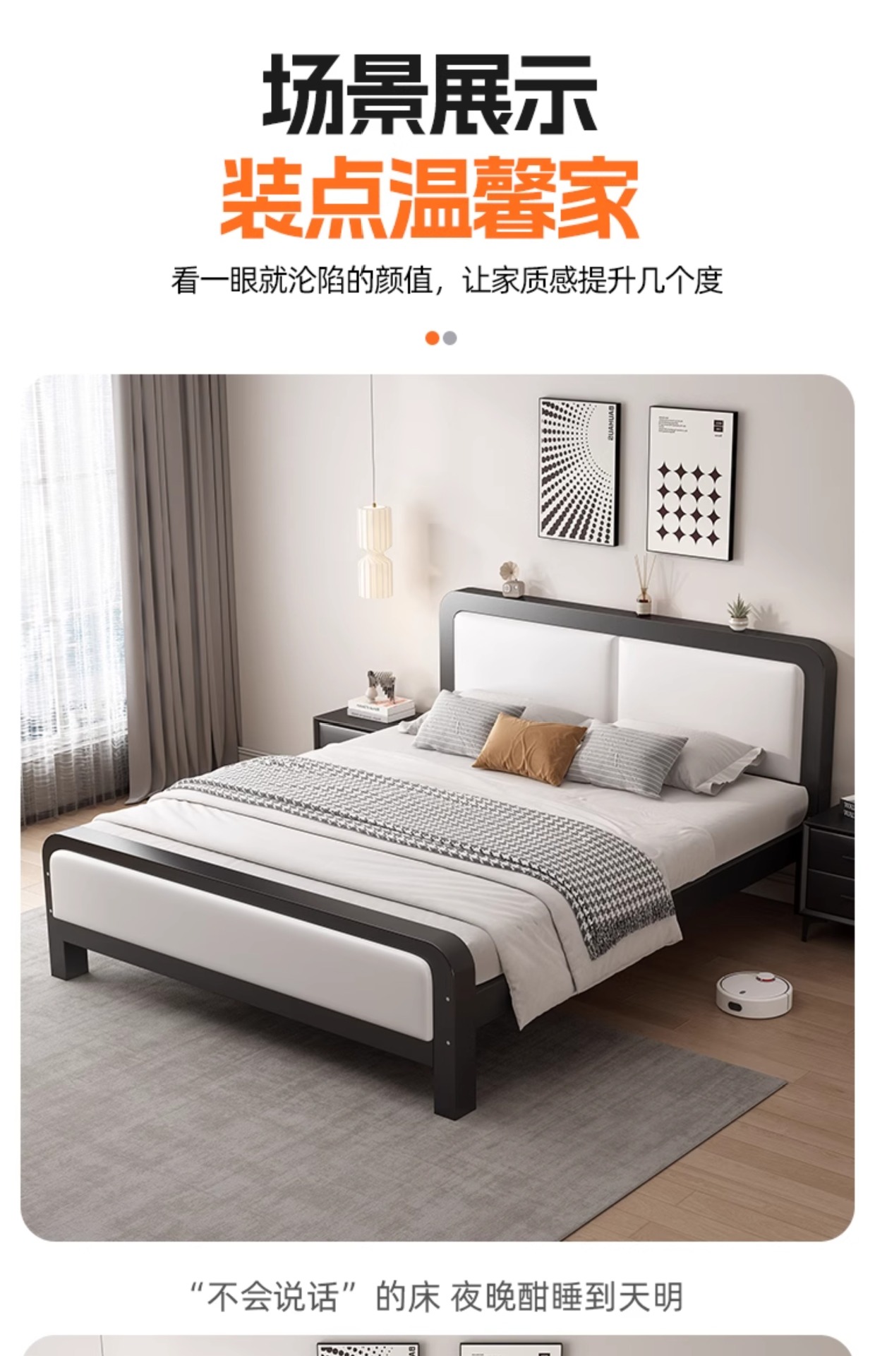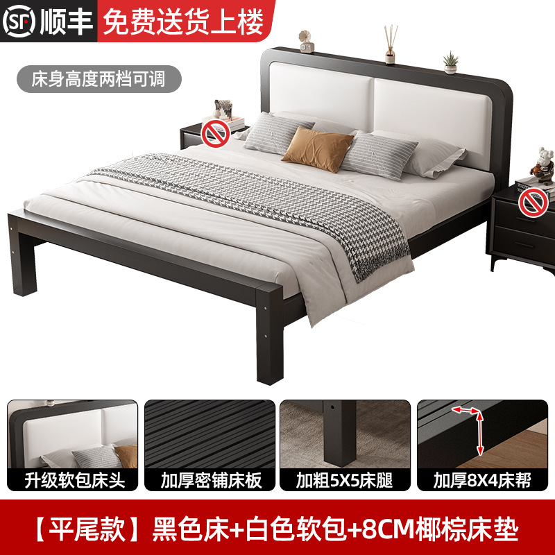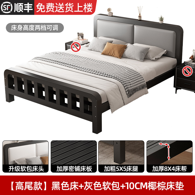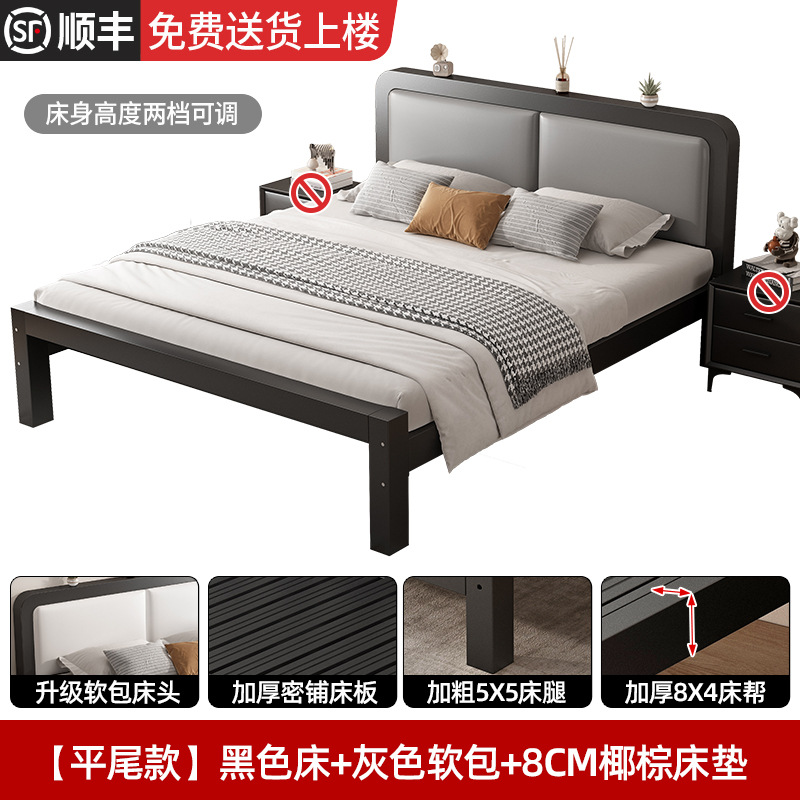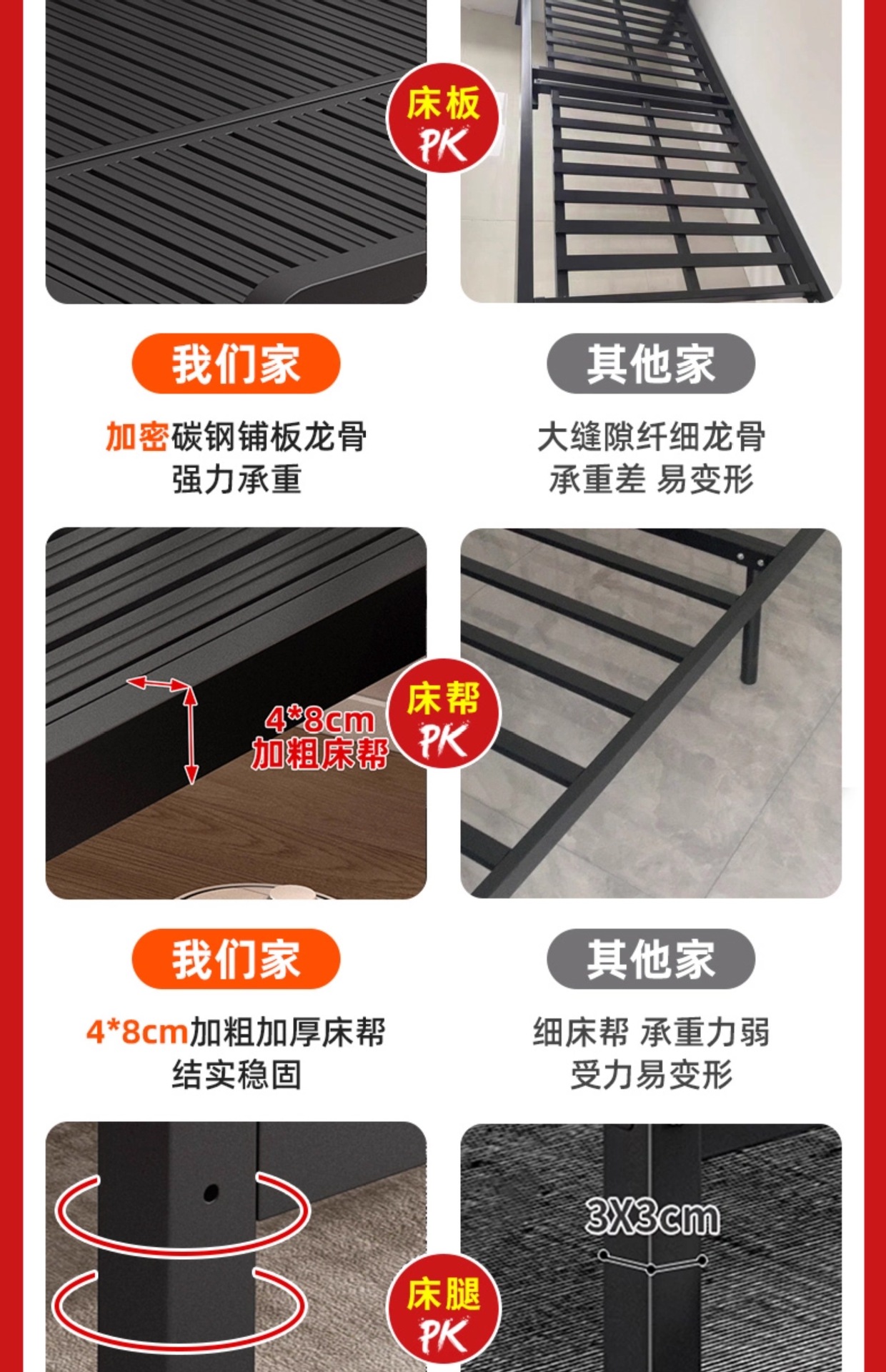 가정용 침실용 철제 침대 더블 침대 스테인레스 스틸 두꺼워지고 강화된 기숙사 싱글 임대실 철제 침대 철제 프레임 침대