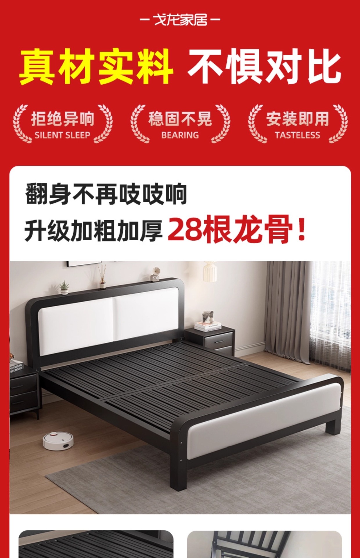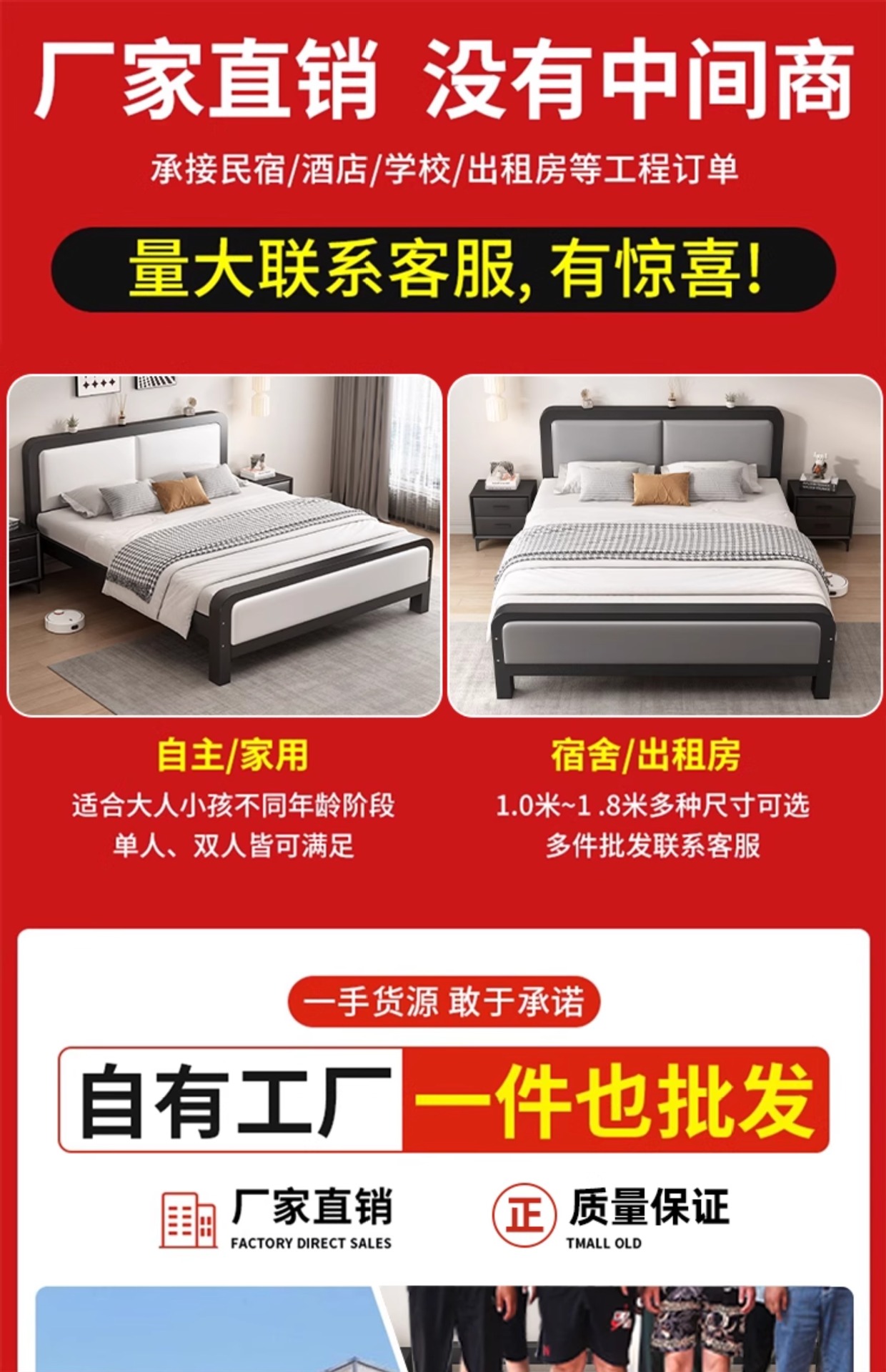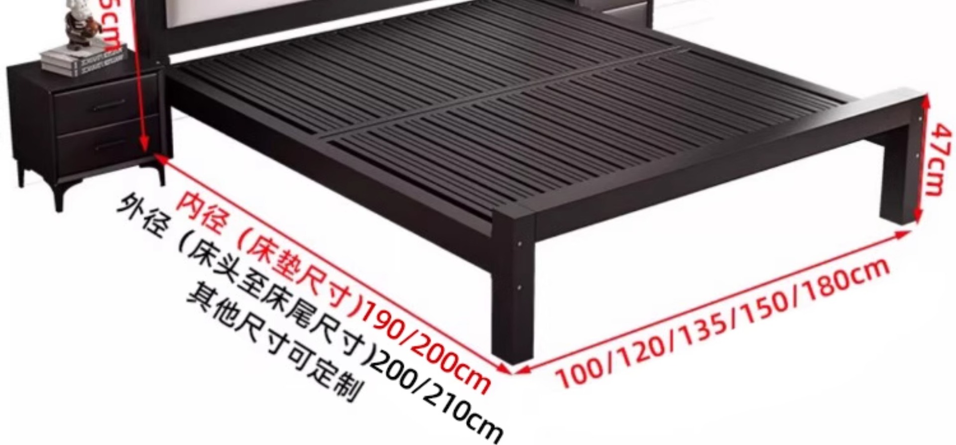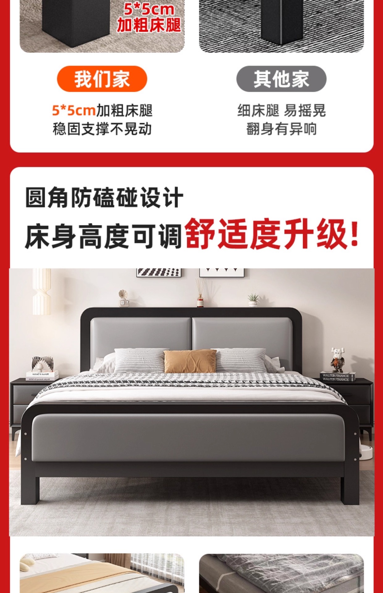 가정용 침실용 철제 침대 더블 침대 스테인레스 스틸 두꺼워지고 강화된 기숙사 싱글 임대실 철제 침대 철제 프레임 침대