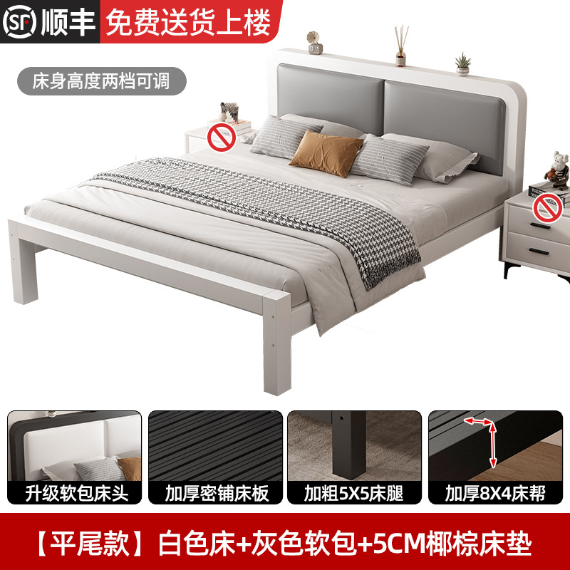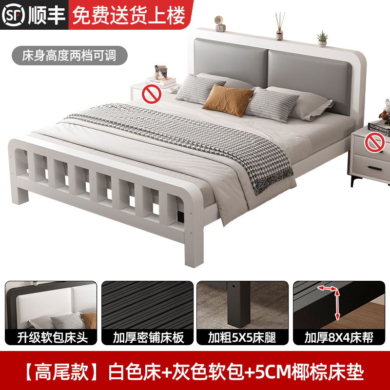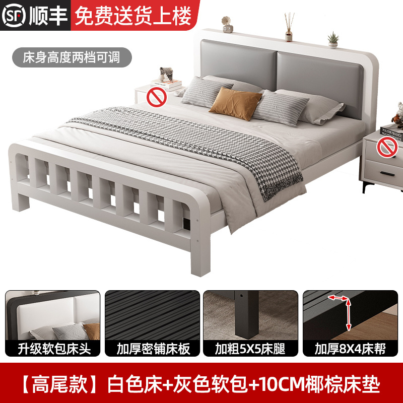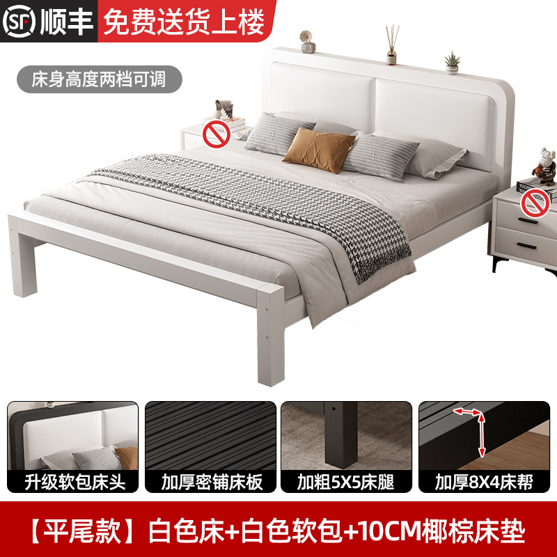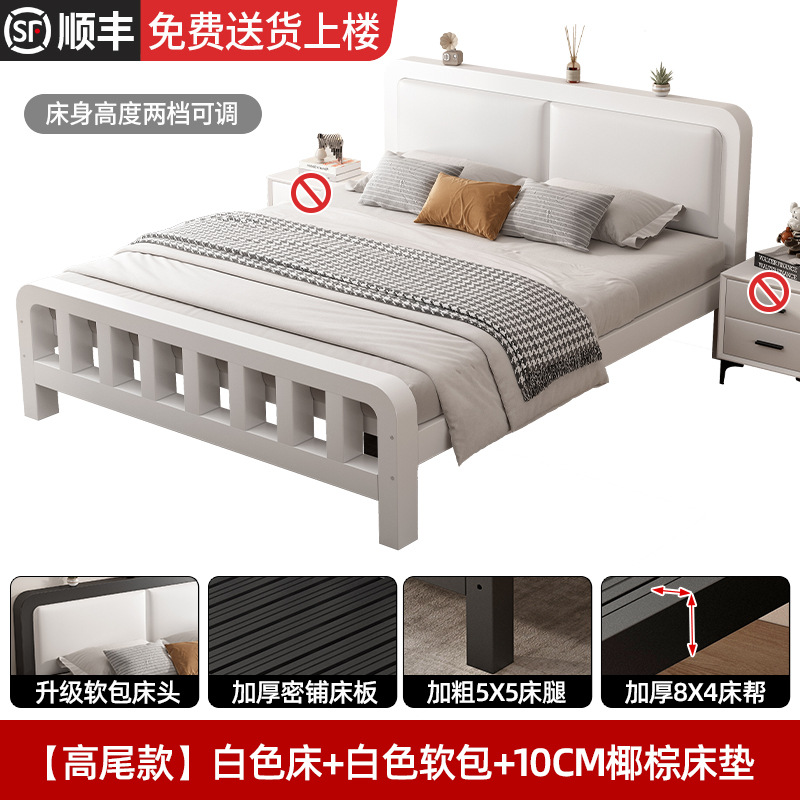 • [고급 소프트커버 하이엔드 모델] 화이트 침대 + 화이트 소프트커버 + 10cm 코코넛팜 매트리스(조절가능)
