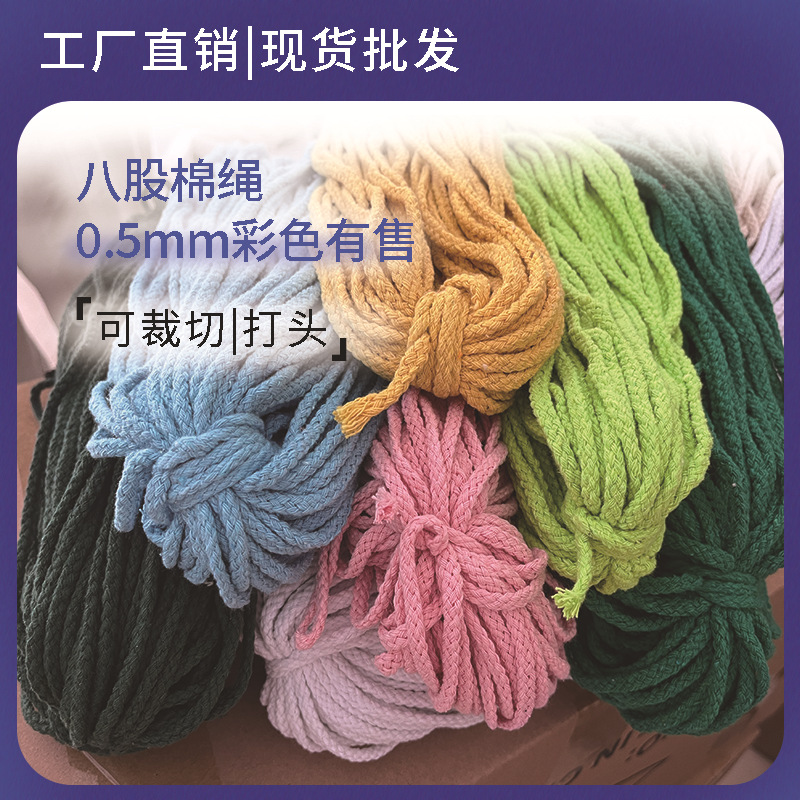 속이 빈 8 가닥 면 로프, 다채로운 순면 수제 DIY 공예품, 바지 허리 조임끈, 공장 재고 있음스토어 가기