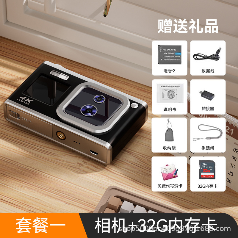 접이식 듀얼 렌즈 4K 고화질 픽셀 디지털 CCD 카메라 캠퍼스 미니 폴라로이드 학생 파티 휴대용스토어 가기